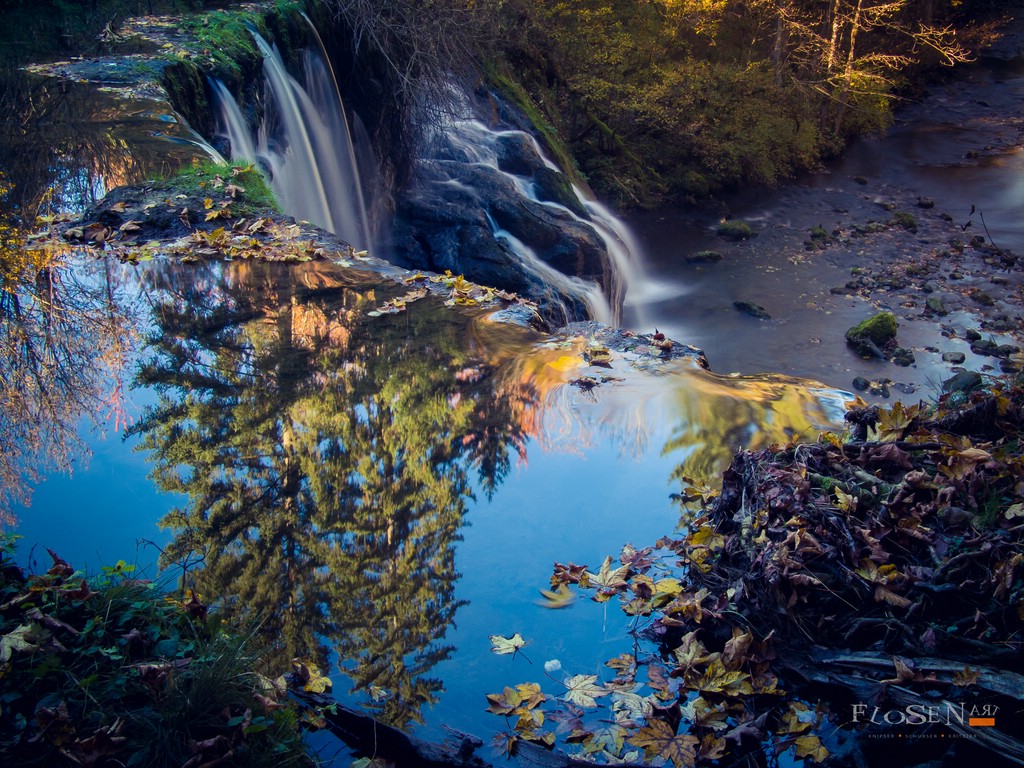 Also gut, angekommen. Das sind also die Wasserfälle. Erster Eindruck „wow“. Wieso? Es war Herbst! Die Blätter waren bunt! Rot, gelb, grün, braun, orange, lilablassblau (Scherz), einfach alles war vertreten. Die Sonne stand mittlerweile tief und das Licht war herrlich, wenn auch aufgrund der Wolken nicht konstant. Meine Gedanken? „Schnell“ „Motivwahl“ „Nicht viel Zeit“! „No it hudla“ würde man bei mir zu Hause sagen, aber es gab nunmal viel zu knipsen und die Wolken am Himmel liesen mich um Unklaren darüber, wie lange die Sonne dort noch einfallen würde.