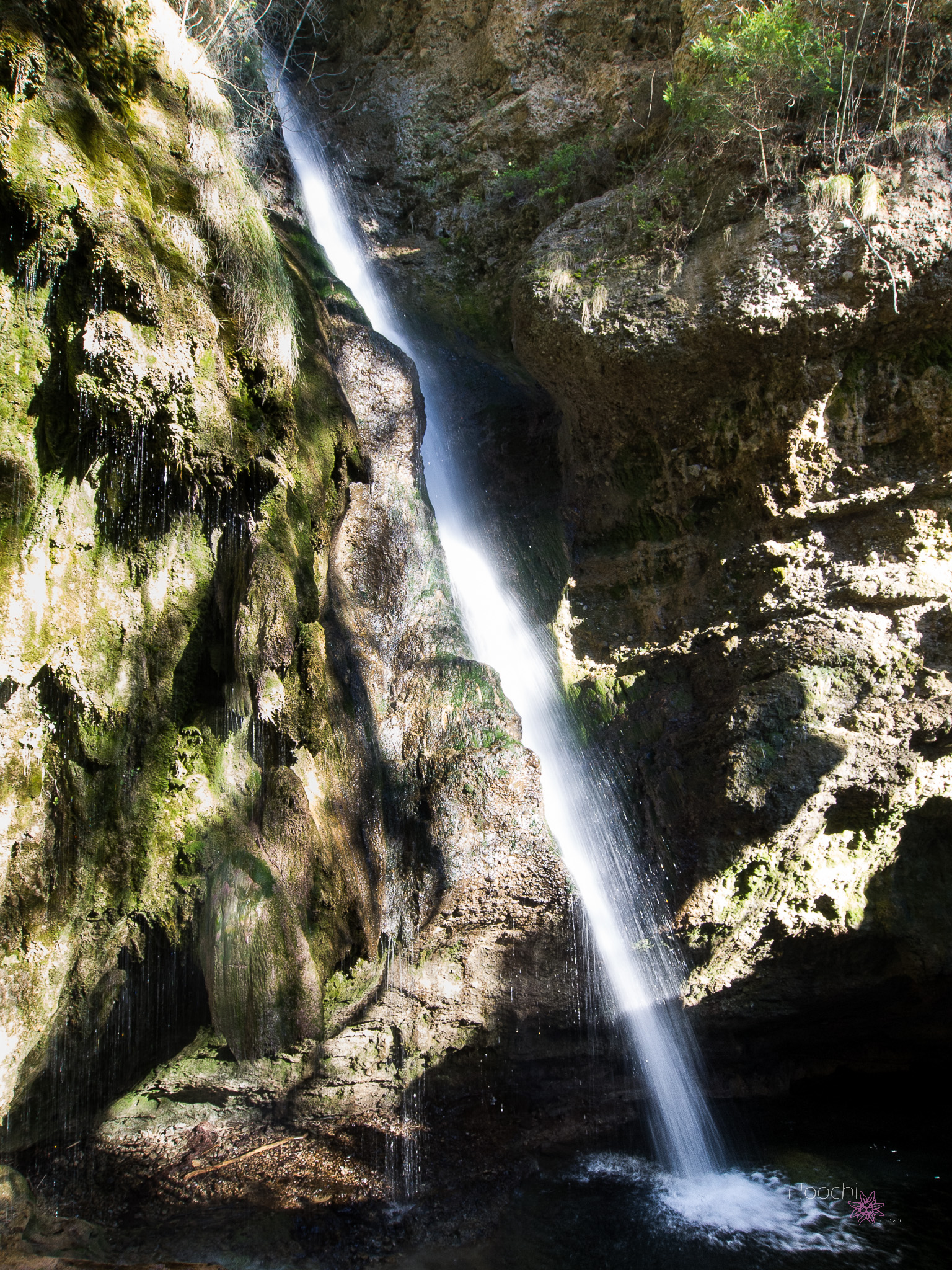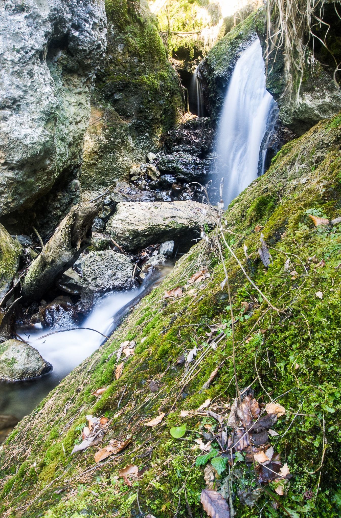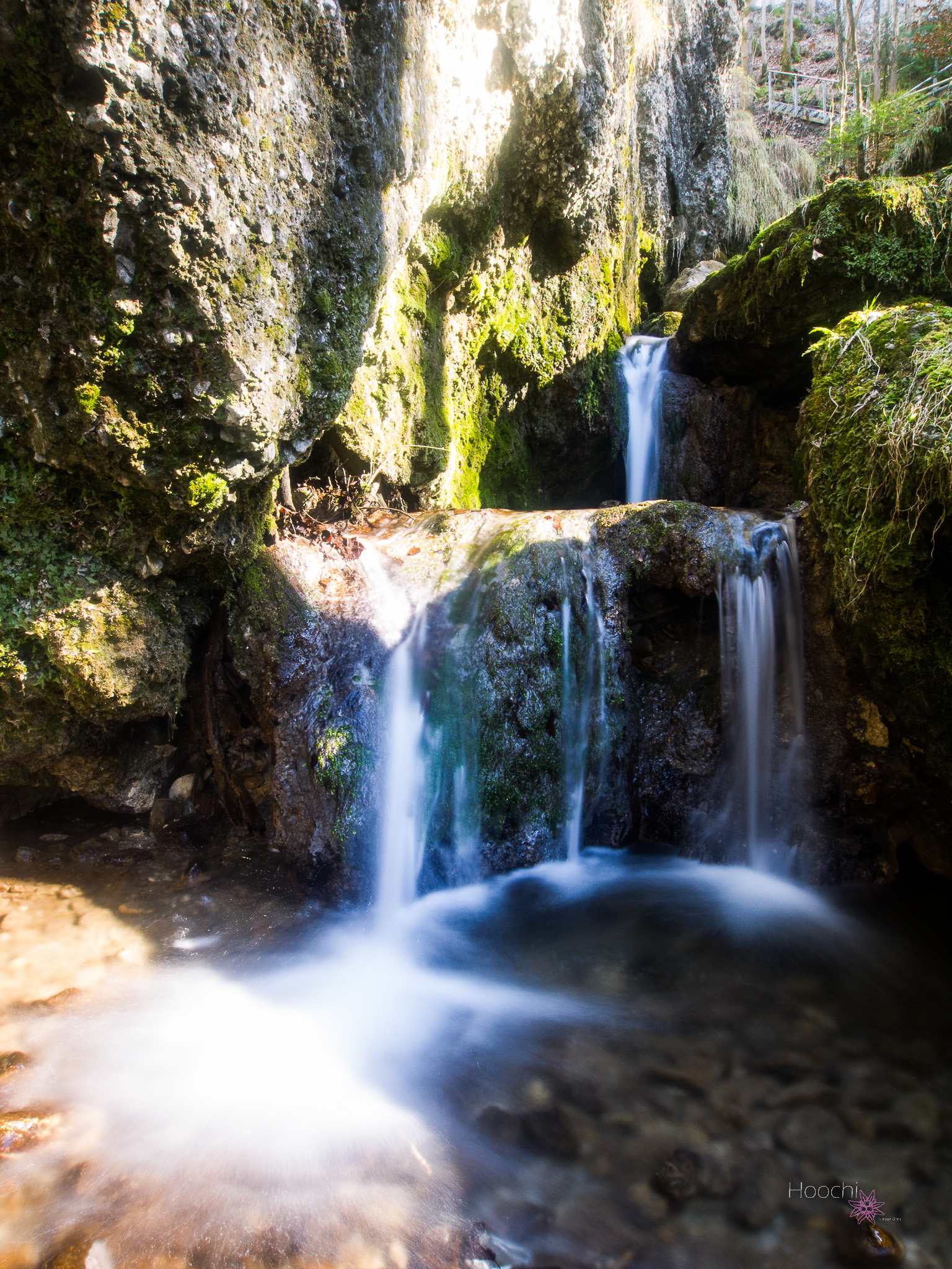 Nachdem die ersten Fotos im Kasten waren und ich auch einigermaßen mit mir zufrieden war, dass ich es noch konnte, was ich einen Tag zuvor erlernt hatte, gingen wir den Weg entlang zum Wasserfall. Platz Nummer zwei.