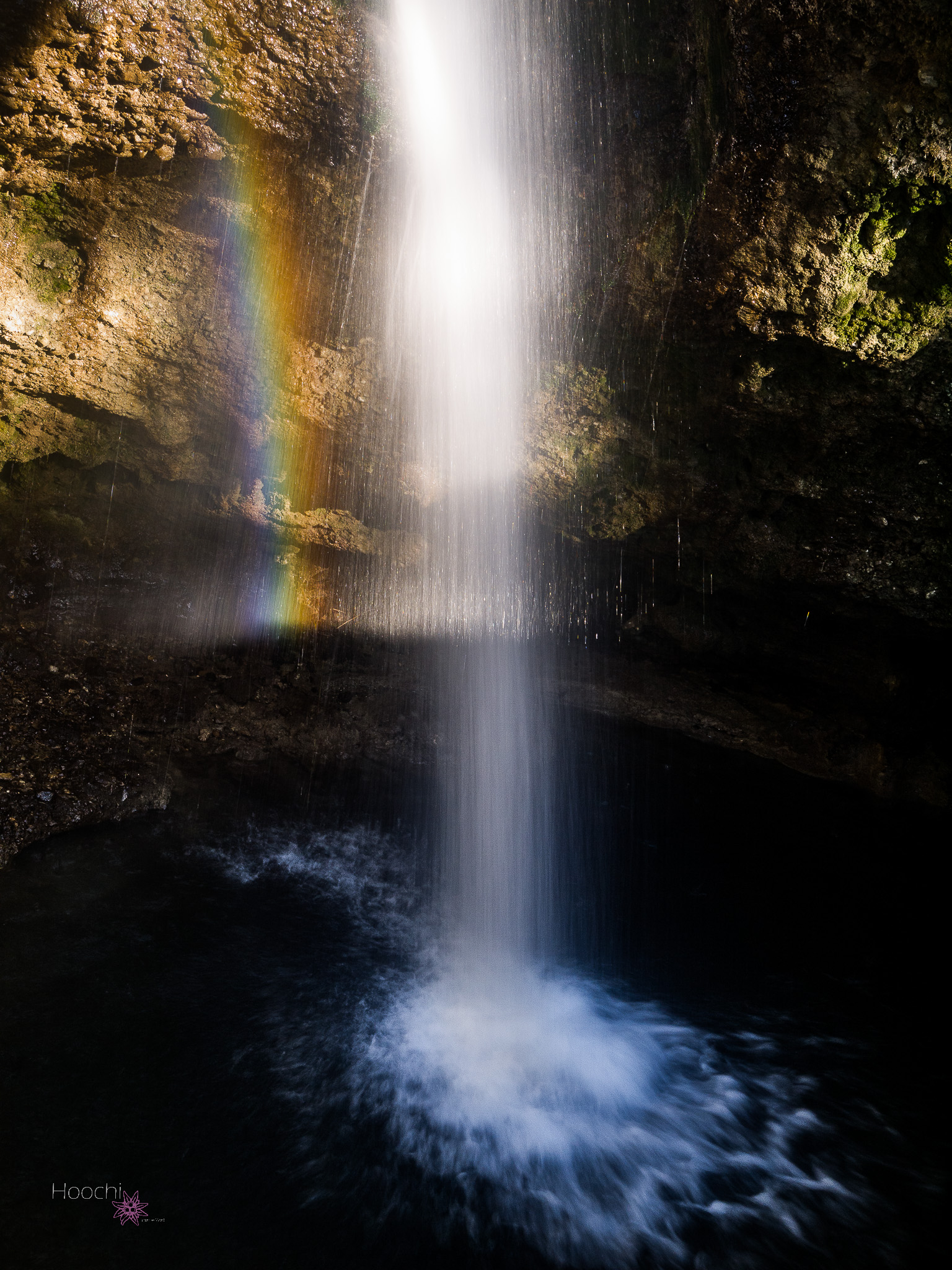 Plötzlich tauchte am Wasserfall ein Regenbogen auf. Flo gab mir eine kurze Einweisung, wie ich den einfangen kann und schon legte ich los.