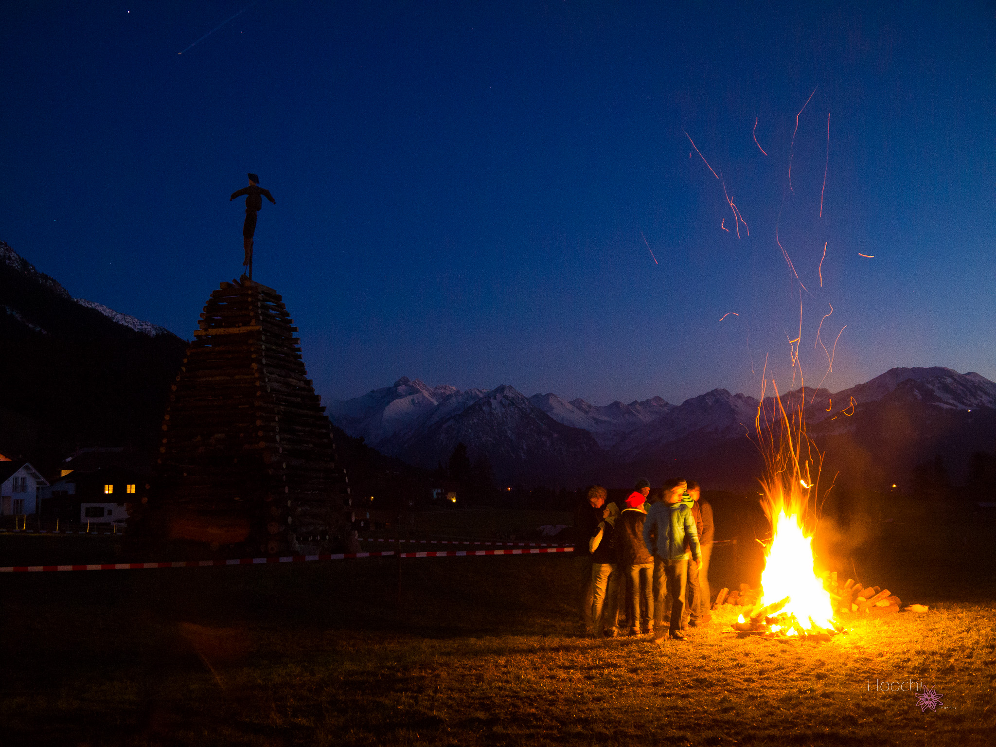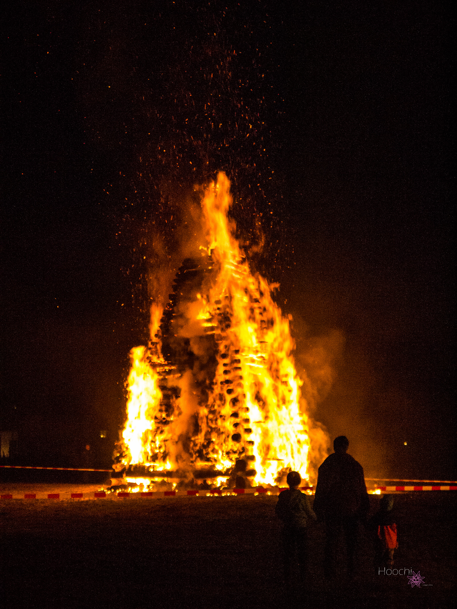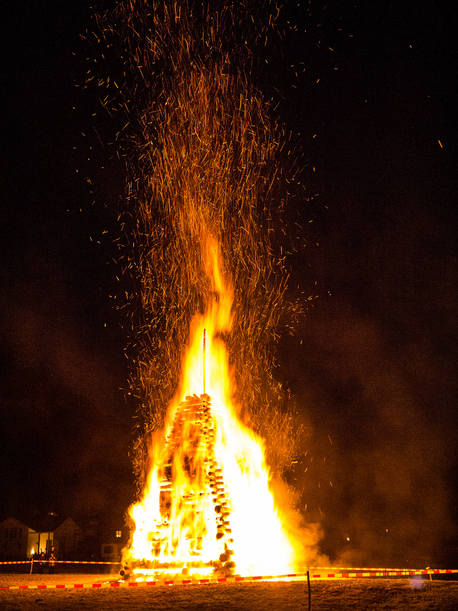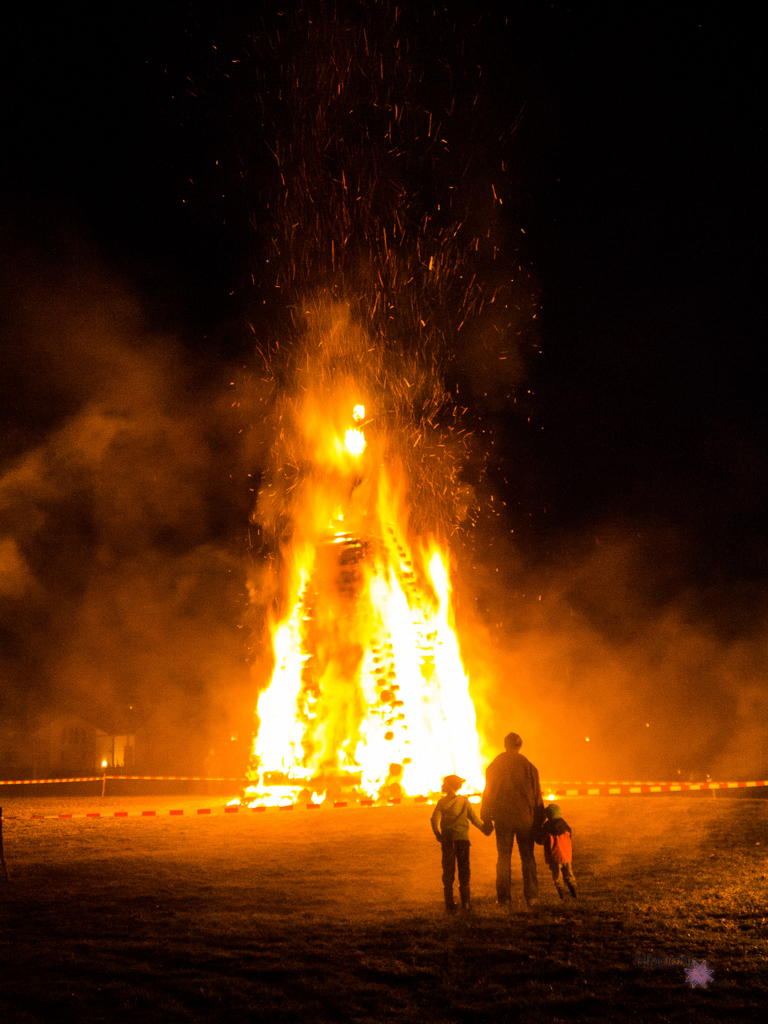 Während wir dort oben standen und die Aussicht genossen, erblickten wir unten im Dorf einen aufgebauten Funken. Sämtliche Gehirnschisse die wir tagsüber abliessen, wo wir später zum Funkenfeuer hin gehen sollten wurden über Bord geworfen. Es war eindeutig, dass wir genau da runter gehen würden. Meine Angst wurde größer. Ich wollte auch so tolle Fotos hinbekommen, wie ich einen Tag zuvor bei Timm gesehen hatte. o.O (Ich weiss, dass Ihr da nun kein Foto von ihm seht. Vielleicht stellt er ja noch eines rein. 😉 )