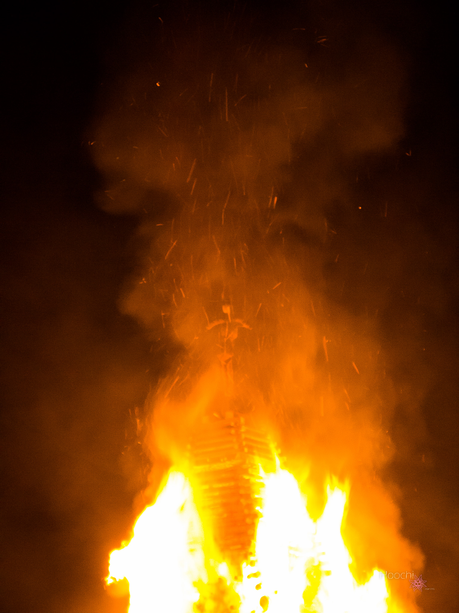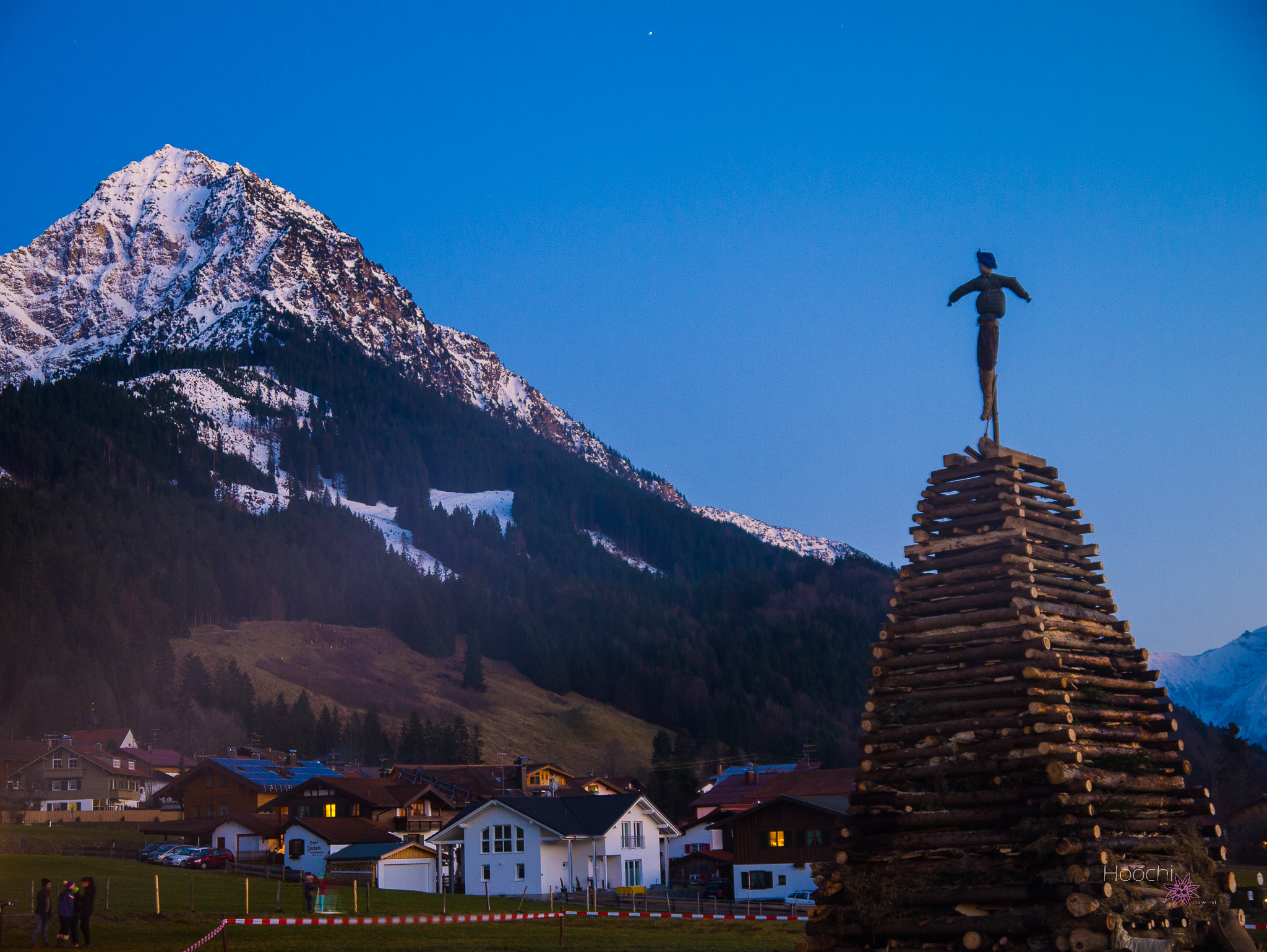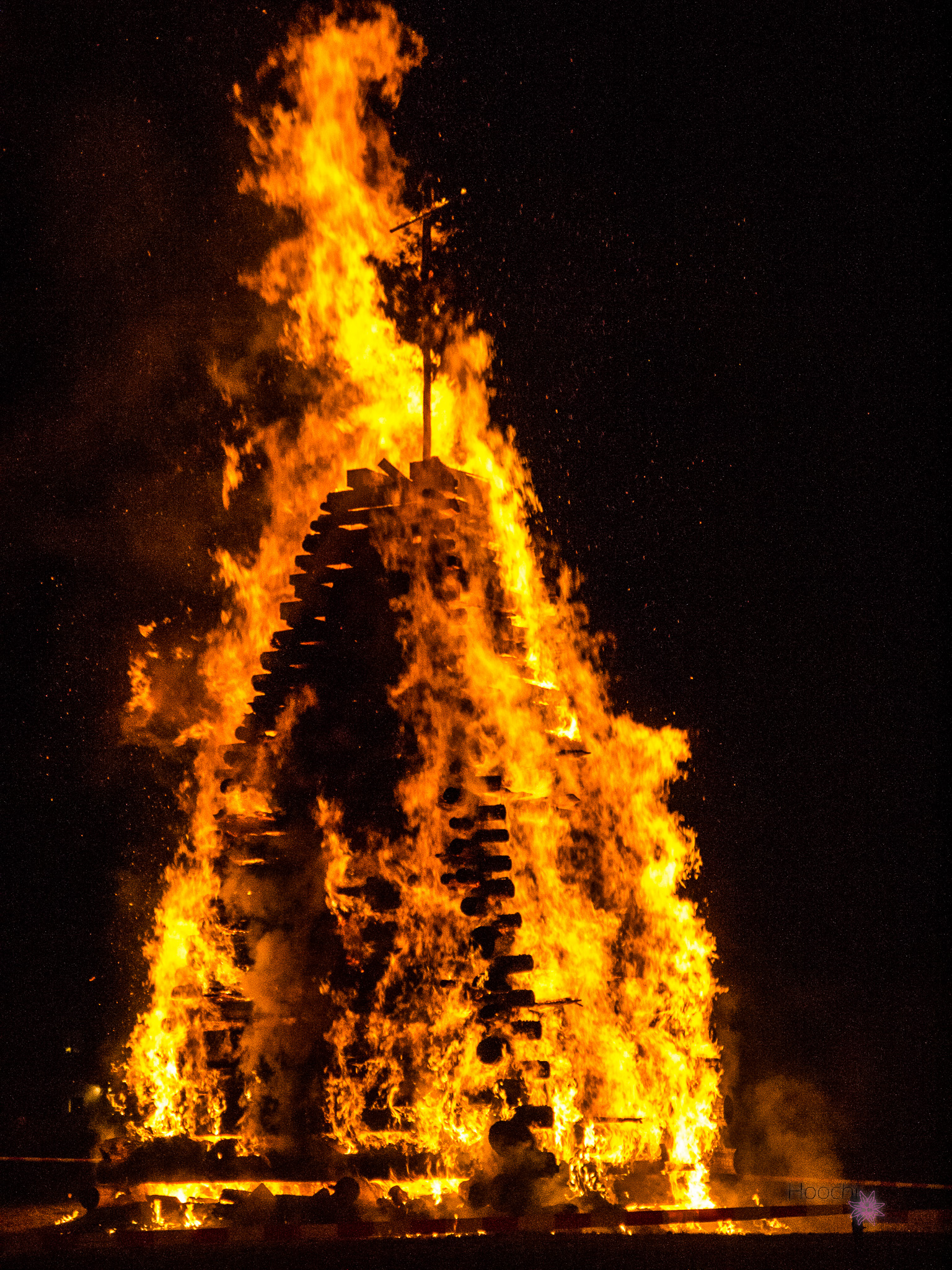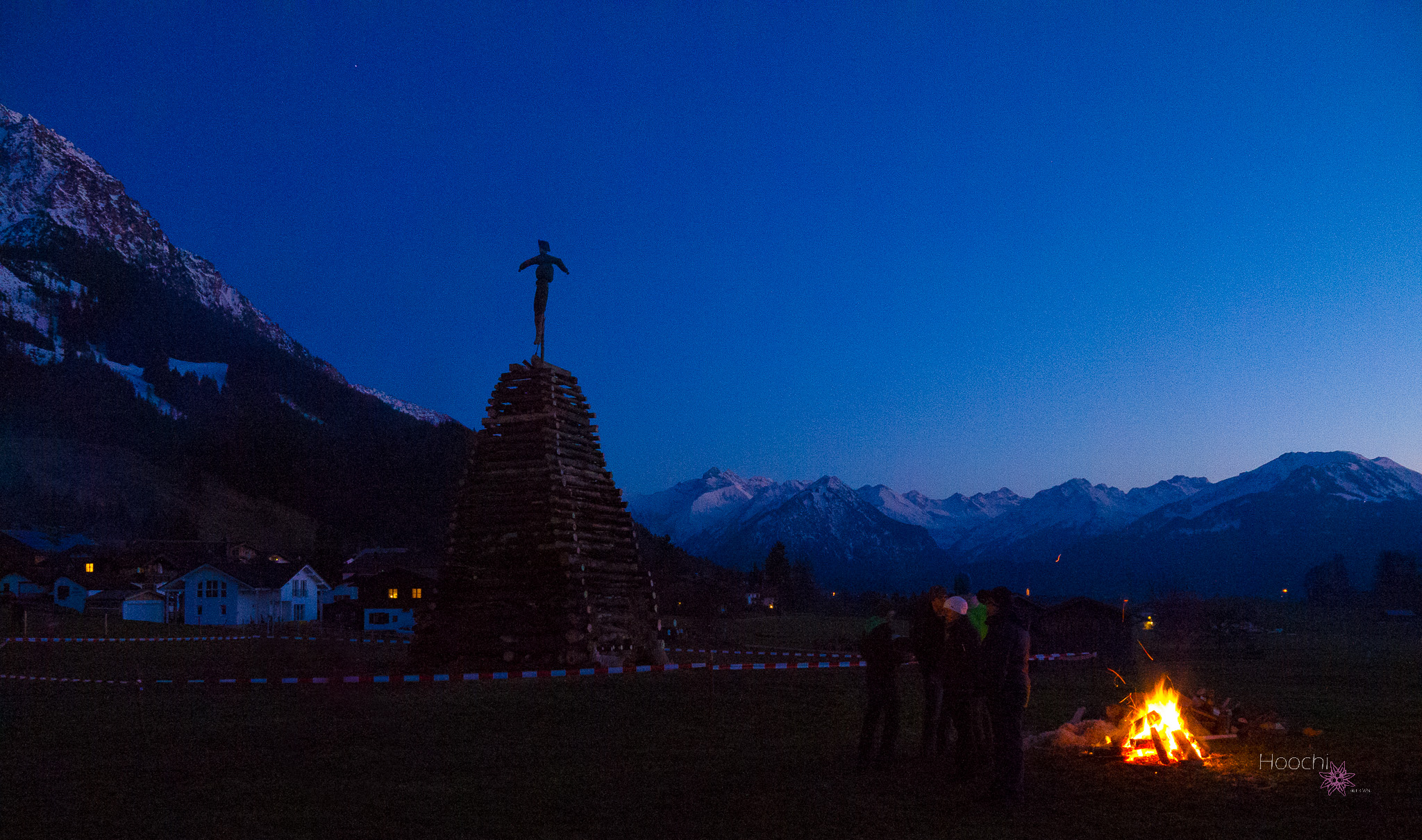Während wir dort oben standen und die Aussicht genossen, erblickten wir unten im Dorf einen aufgebauten Funken. Sämtliche Gehirnschisse die wir tagsüber abliessen, wo wir später zum Funkenfeuer hin gehen sollten wurden über Bord geworfen. Es war eindeutig, dass wir genau da runter gehen würden. Meine Angst wurde größer. Ich wollte auch so tolle Fotos hinbekommen, wie ich einen Tag zuvor bei Timm gesehen hatte. o.O (Ich weiss, dass Ihr da nun kein Foto von ihm seht. Vielleicht stellt er ja noch eines rein. 😉 )