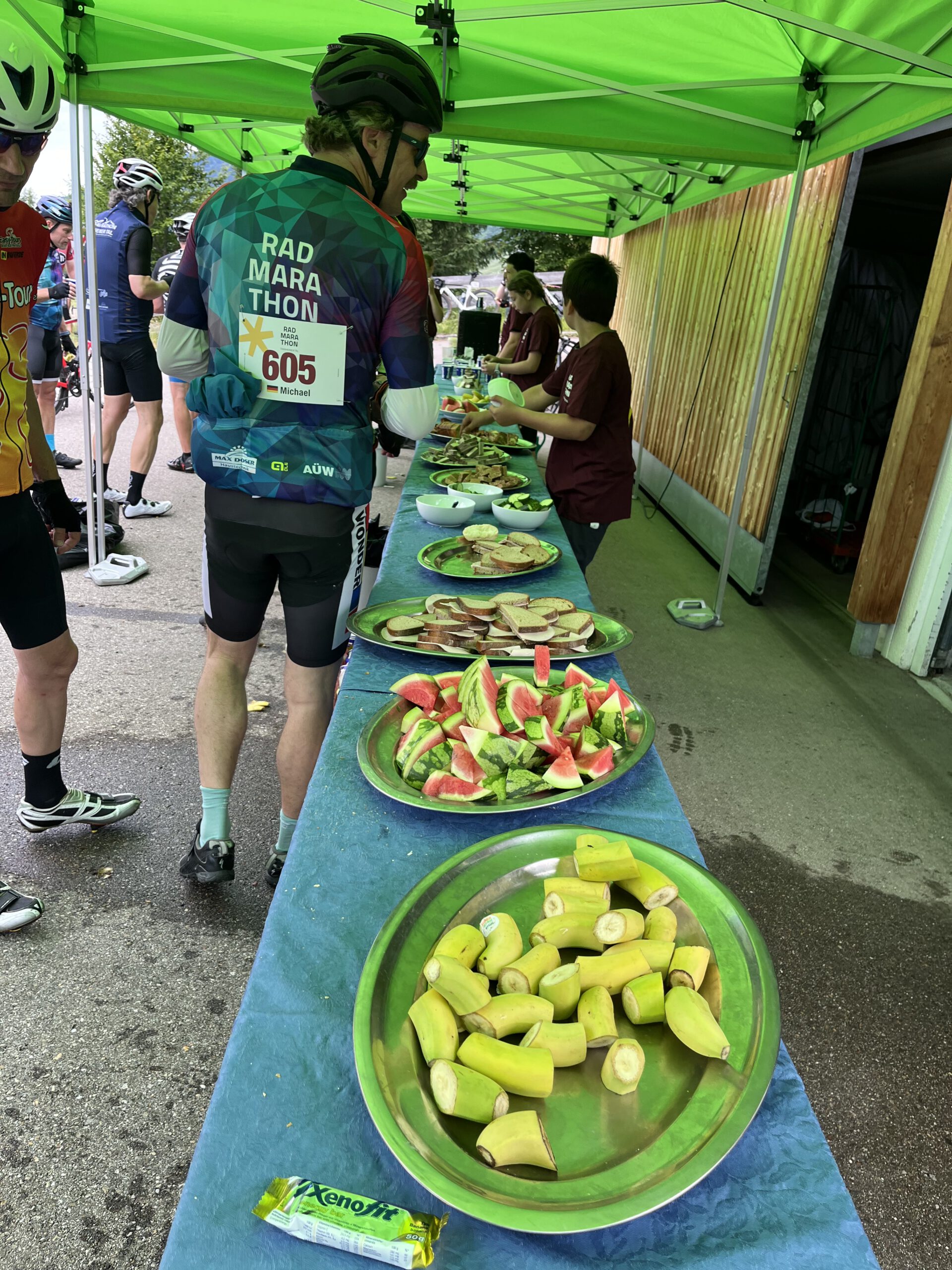 Die Verpflegungspunkte lassen keine wünsche Offen. Abgesperrt ist nur das Tannheimer Tal zu Beginn, danach mischt es sich mit dem Straßenverkehr. ABER da muss ich auch sagen. An jedem Kreisverkehr, an jeder Zufahrt steht jemand. Egal ob die Polizei am Kreisverkehr den PKW-Verkehr regelt wenn Du mit dem Rad ankommst oder freiwillige Helfer die Zufahrten der Nebenstraßen absichern. Alles ist geregelt. Ganz stark!