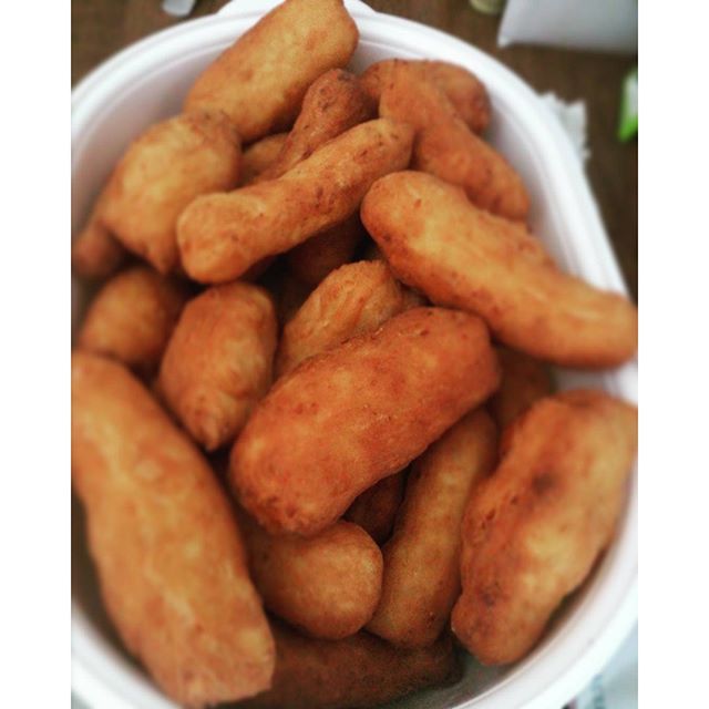 Auf einer bemehlten Arbeitsfläche Daumengroße Stücke formen / schneiden und in der heißen Fritteuse oder Pfanne goldgelb frittieren.