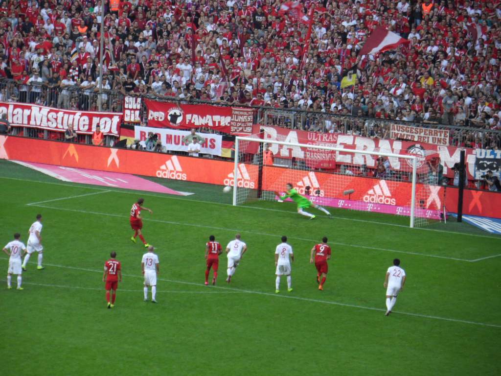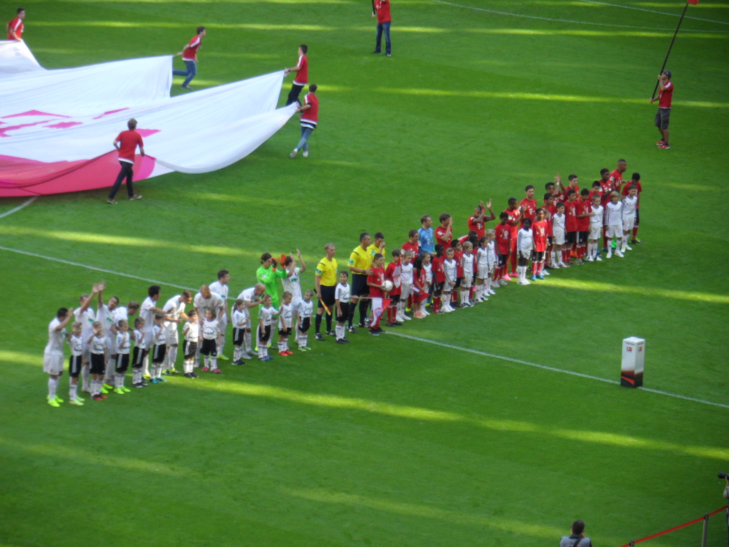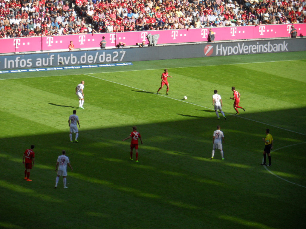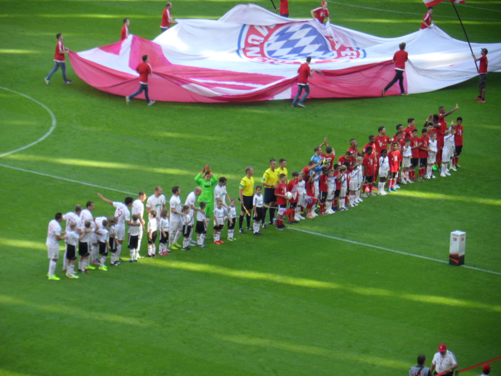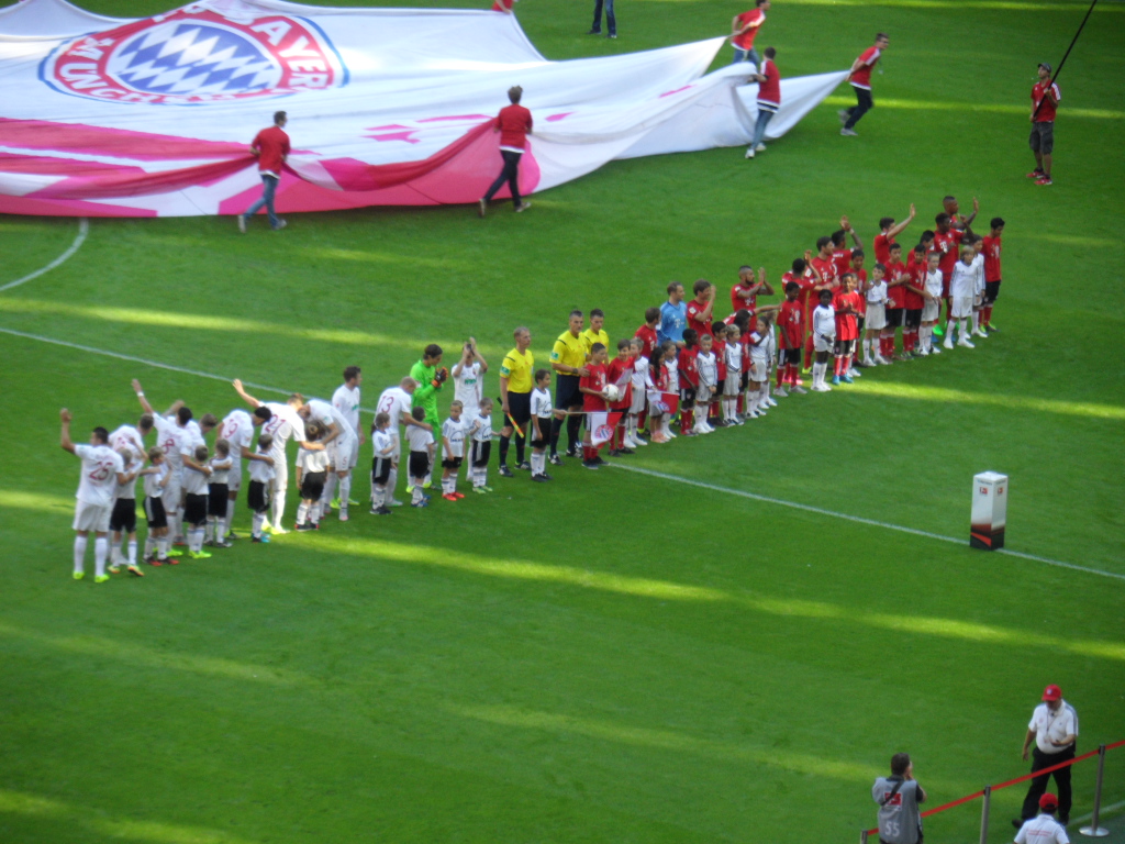 Genervt war ich eher davon, dass die Ordner ihre Arbeit nicht so toll ausführten und mit uns im Mittelrang ca. 80% Bayern Fans waren. Wenn ich das gewusst hätte… dann hätte ich mein schickes Trikot von den Roten angezogen. Naja, halb so wild. Ich fieber auch gerne mit dem FCA.