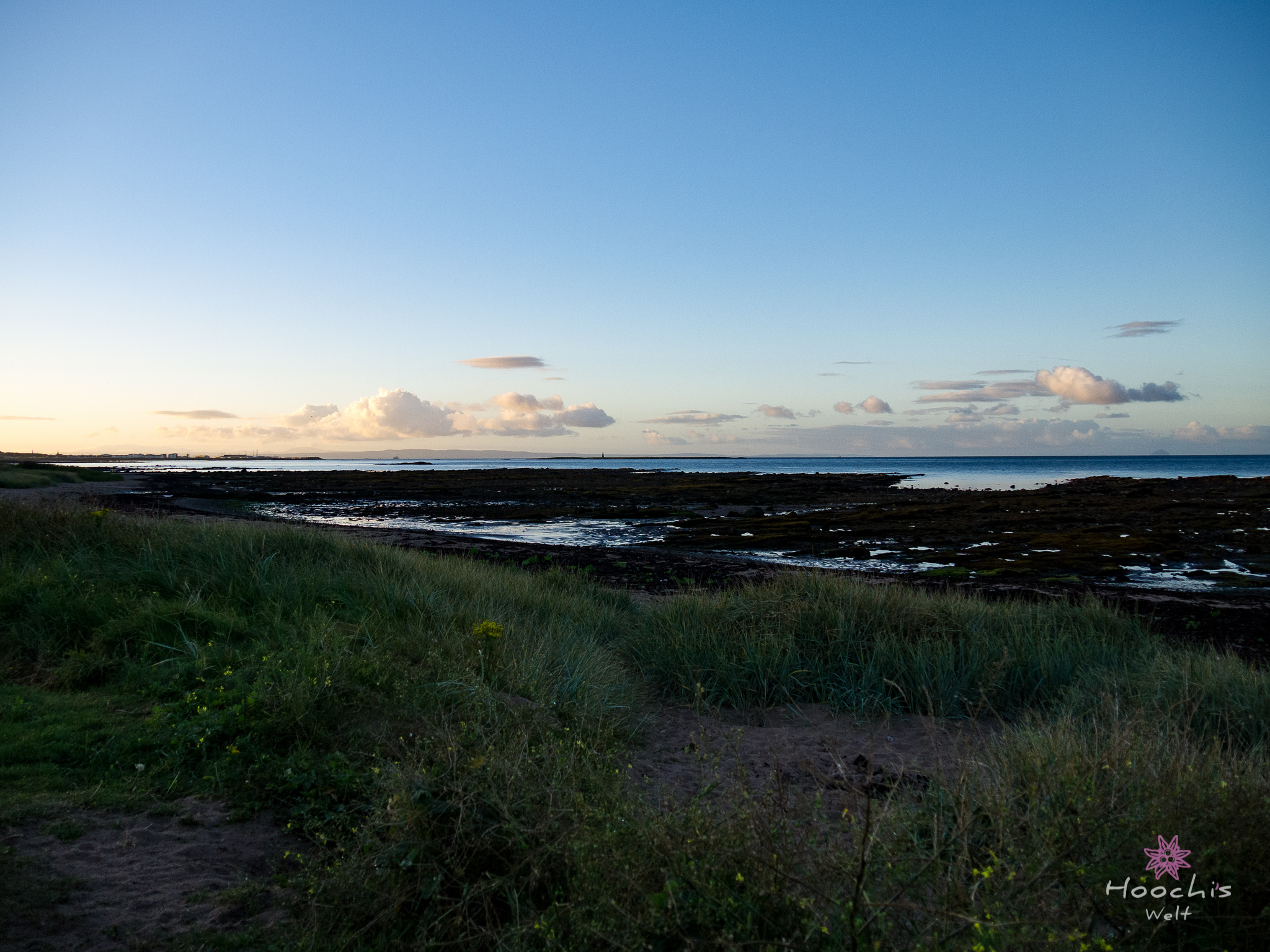 Spazieren gehen ist hier kein Problem. Entlang des Meeres führt ein breiter Weg durch eine schön angelegte Parkanlage. Dort trifft man am Morgen schon auf Menschen, die ihren sportlichen Aktivitäten nachgehen, mit dem Hund im Park spielen oder einfach so den Weg entlang schlendern. Da die Schotten ein sehr geselliges Volk sind, wünscht hier einfach Jeder einem einen guten Morgen. So kam es des öfteren vor, das wir ein „madainn mhath“, seltener ein „good morning“ hörten.