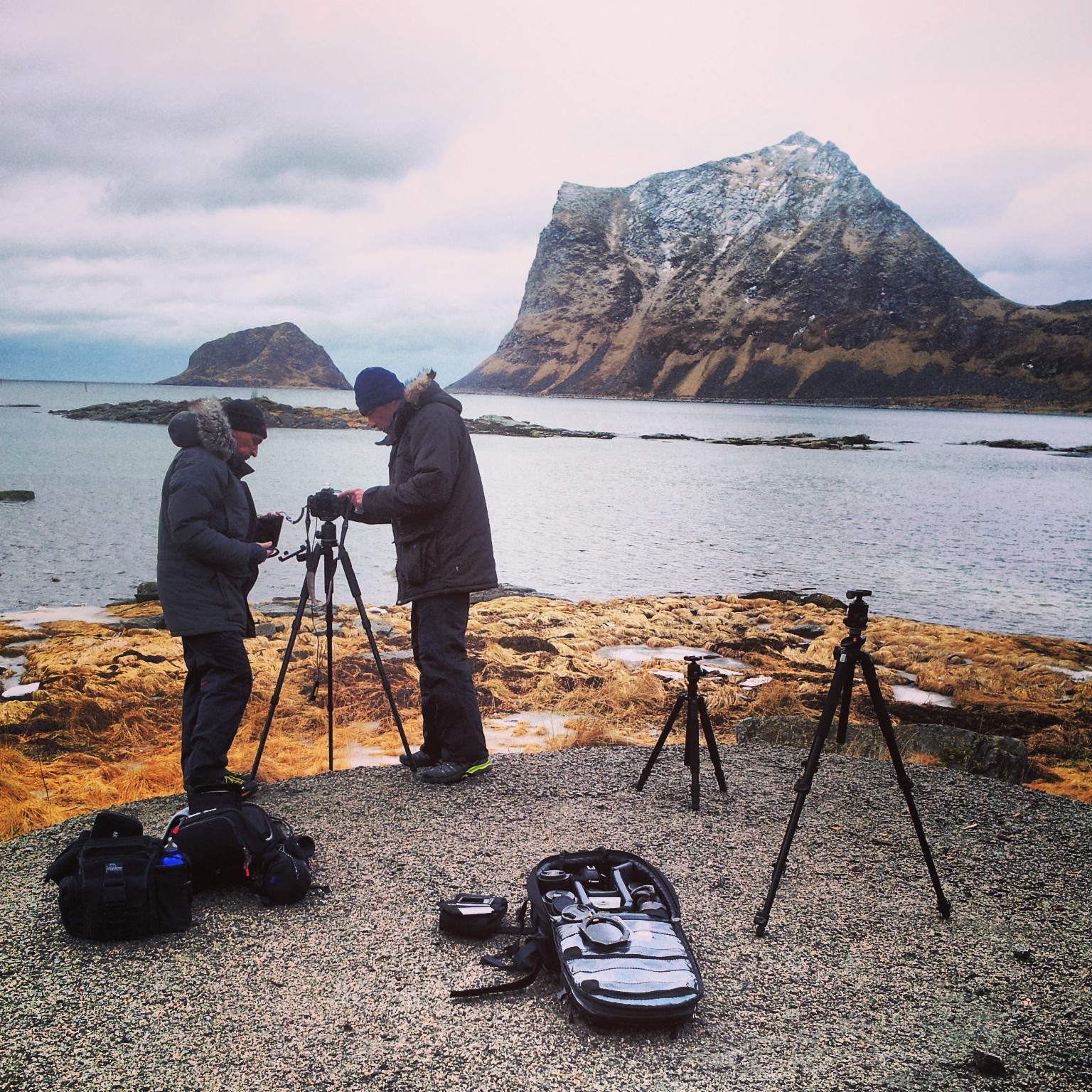 Bei unserem Auroraausflug nach Haukland zeigte sich mal wieder wie klein unsere Welt doch ist. Wir trafen – wie kann es auch anders ein – einen deutschen Fotografen vor Ort, der sich ebenfalls nicht die ersten Aurorastöße entgehen lassen wollte. Wie so oft kommt man unweigerlich ins Plaudern, wenn man nebeneinander steht und knipst. Wir unterhielten uns ein wenig und kamen irgendwie auf das Thema Tiltshift. Er meinte daraufhin, dass er über das DSLR-Forum vor 2 Wochen sein Objektiv verkaufte. Mir kam in Erinnerung, dass Thomas sich vor der Reise ein solches Objektiv gebraucht angeschafft hatte. Und jetzt ratet mal. Genau! Exakt von dieser Person, die zufällig zur selben Zeit auf den Lofoten war und zufälligerweise auch genau an jenem Abend, die glorreiche Idee hegte, sich exakt im gleichen Moment zum Hauklandbeach zu bewegen, hatte Thomas das Objektiv gekauft. Verrückte kleine Welt!
