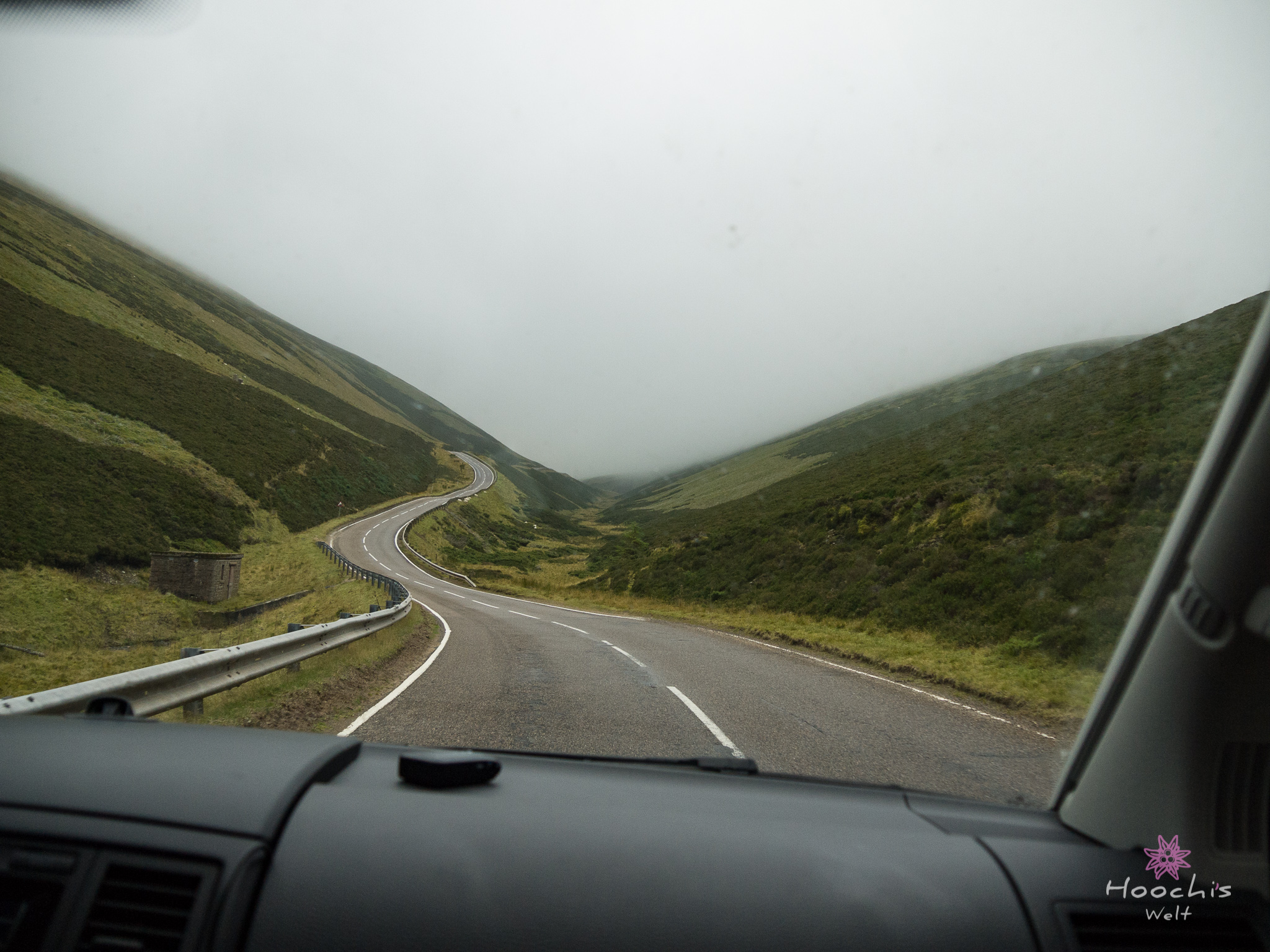 Nachdem auch Bruno zum weiter fahren bereit war, ging unsere Route weiter in Richtung Dava, Tomintohl. Diese Strecke führte durch den Cairngorms Nationalpark und war zu Beginn des Roadtrips nicht eingeplant. Da wir aber einen Tag mehr Zeit hatten, fuhren wir diese Route durch das Gebiet. Das kannten wir ja noch nicht.