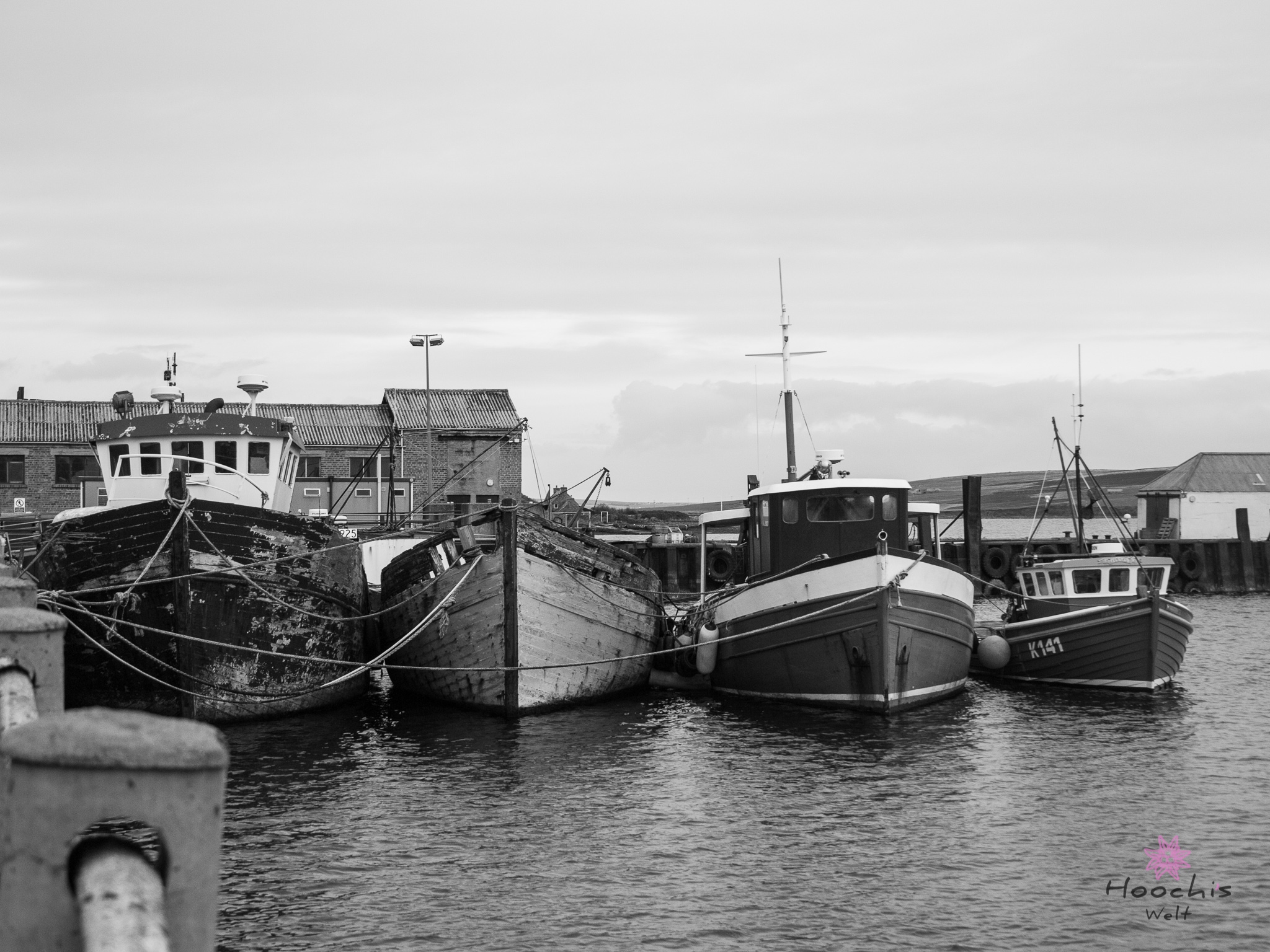 Eine Stunde vor dem Ablegen der Fähre fuhren wir zum Hafen St. Margaret´s Hope und kauften uns unser Ticket. Als wir anschließend warteten, fiel Flo ein, dass vergangene Nacht die Uhren auf Winterzeit umgestellt wurden und wir somit nicht eine, sondern zwei Stunden auf die Fähre warten mussten.