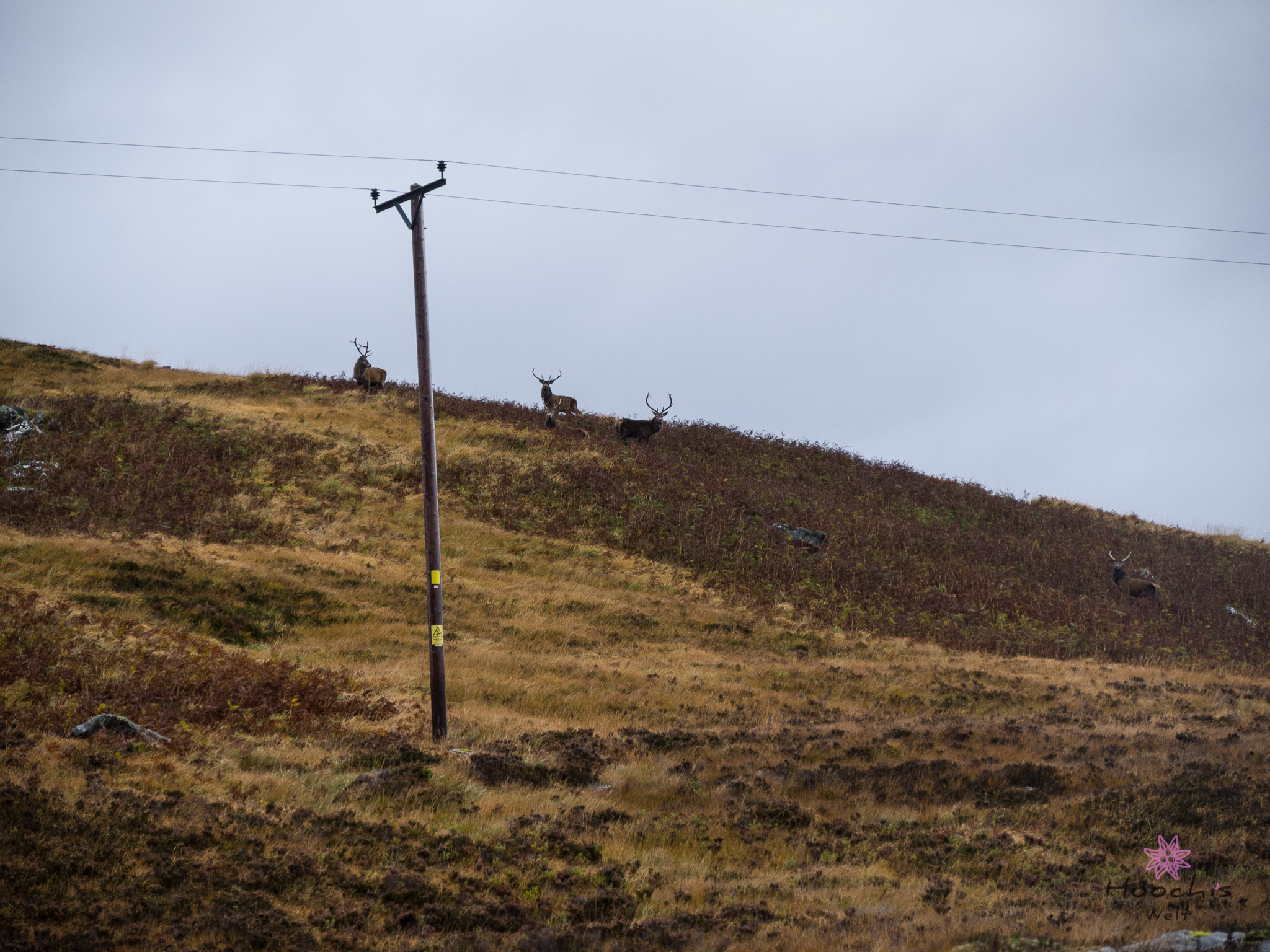Anschließend führte uns Bruno über Golval nach Lairg zum Shin Falls. Auf dem Weg dort hin bekamen wir frei lebende Hirsche und Rehe. Dank eines aufmerksamen Mannes, der uns mit dem Worten