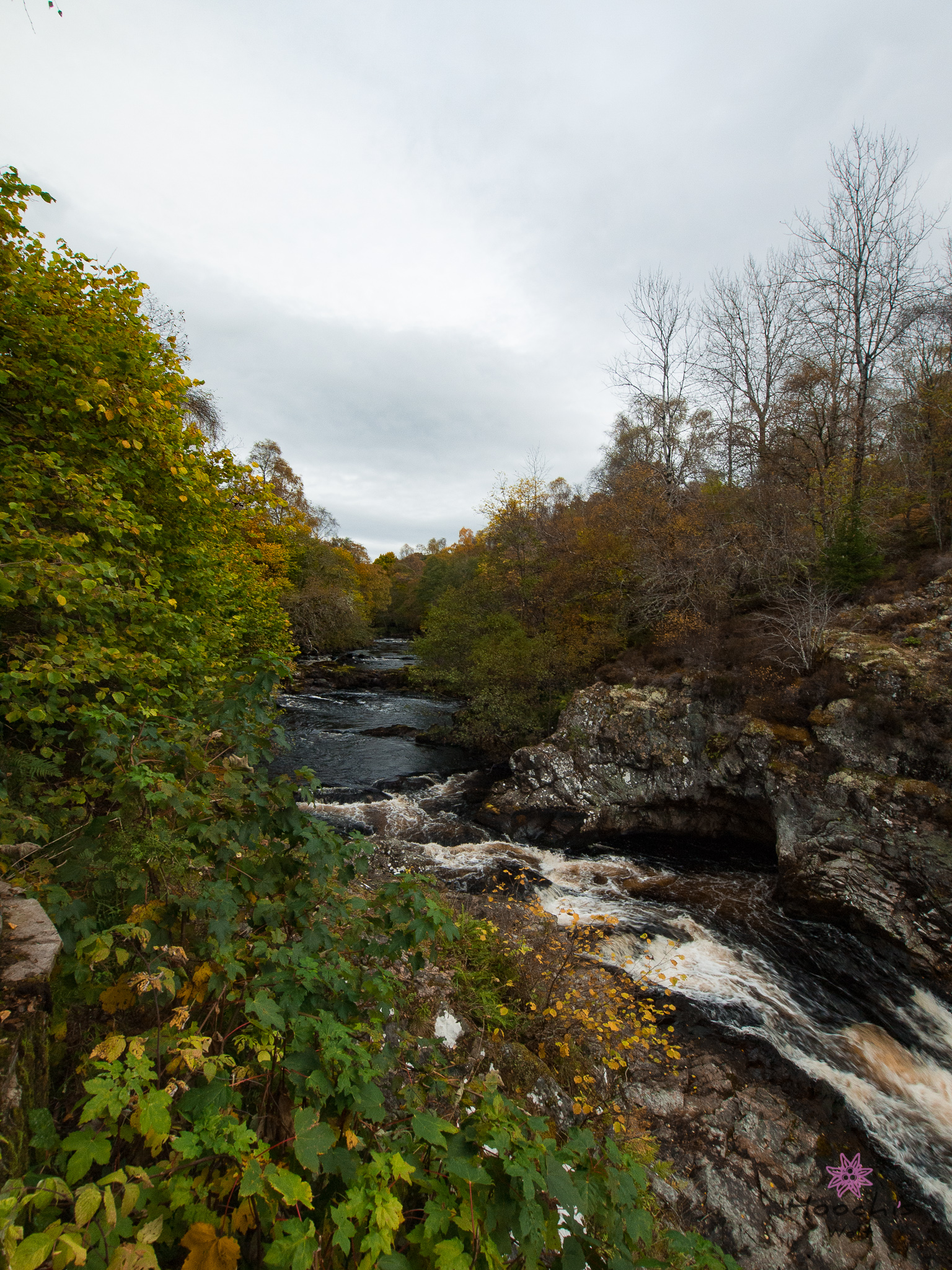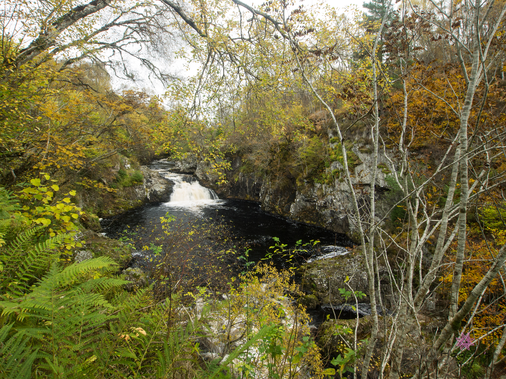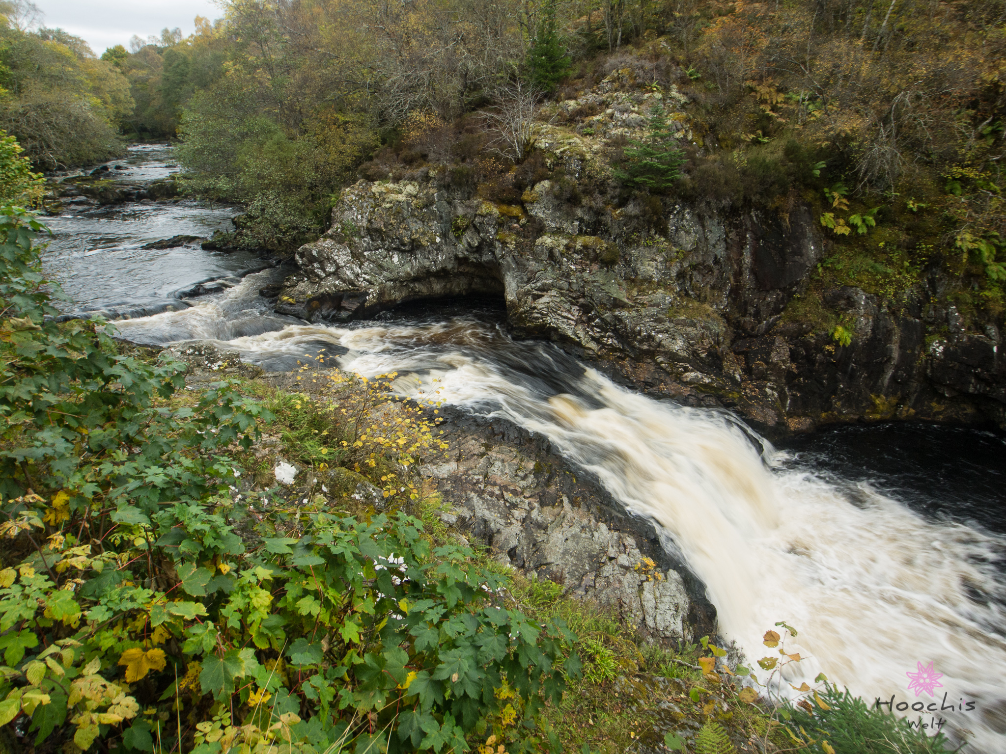 Nachdem ich mich frisch gemacht hatte und wir mit den üblichen Aufräumarbeiten fertig waren, zogen wir unsere Stiefel an und liefen zum Falls of Shin, einem Wasserfall.