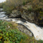 Der Weg dorthin war breit und man benötigte keine Trittsicherheit, denn es war zum Teil geteerter Weg. Warum wir zu diesem Wasserfall sind? Dort finden die Lachsspünge statt und man soll sie sehr gut sehen. Am Wasserfall ist auch eine Plattform mit Sitzmöglichkeiten. Also alles sehr auf Tourismus angelegt.