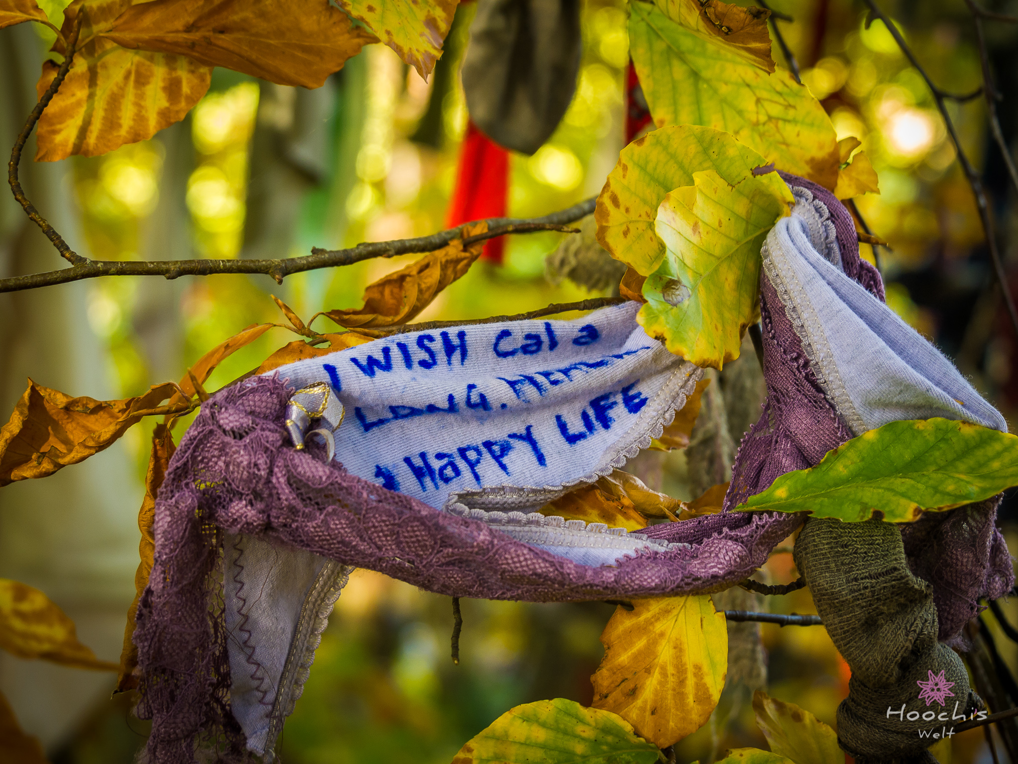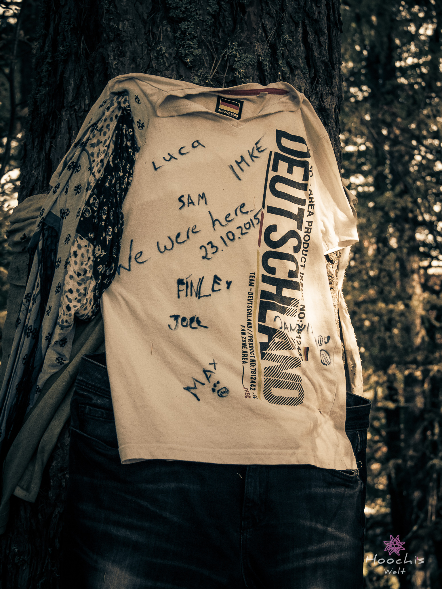 Ich fand diesen Ort gruselig und zum schauern. Es bereitet einem ein ganz komisches Gefühl aus Faszination und Grusel. Ich kann es gar nicht in Worte fassen. Überall hängen dort Kleidungsstücke, Flaggen und Stofftiere. Wenn ich dort bei Dämmerung gewesen wäre, ich glaube, ich wäre rückwärts wieder heraus.