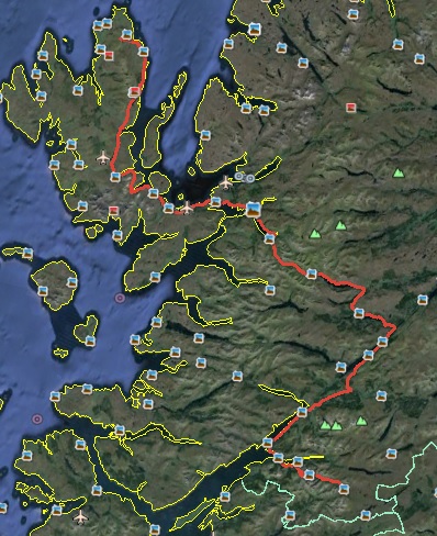Dorthin kamen wir, indem wir bei Kyle of Lochalsh über eine große Brücke fuhren. Flo fuhr weiter über Sligachan nach Portree. Von da aus konnte man schon den „Old Men Of Storr“ sehen, der noch ganz klein ist. Wir wechselten die Strasse und fuhren nun die A855 zum Loch Leathan.