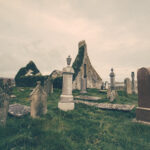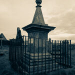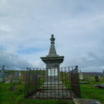 Flo und ich suchten mehrmals den Friedhof nach dem Grabstein von McMurdo ab und wir fanden nichts. Es gab zu viele, die mit Moos zugewachsen sind. Erst bei den Recherchen zu Hause stellte ich fest, dass ich doch das Grab gefunden und sogar fotografiert hatte. Wir suchten außerhalb der Kirchenruine, dabei ist es direkt am Eingang auf der linken Seite.