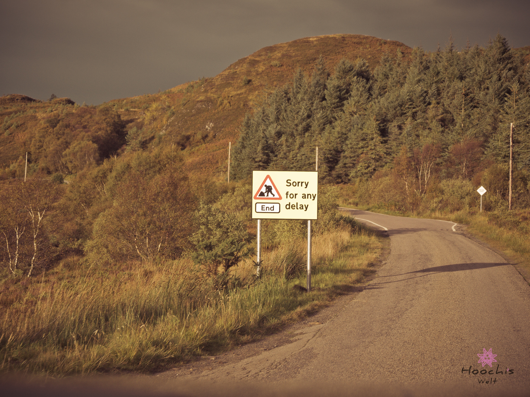 Plötzlich trat Hektik und Panik auf. Flo fand sein Stativ nicht mehr. Wir suchten den gesamten Bus ab, aber es war nicht da. Nun wurde überlegt, wo und wann der Herr Chaot das Stativ zum letzten Mal hatte. Seiner Meinung nach kurz nach dem Ardvreck Castle, als wir an einem Straßenrand Fotos machten.