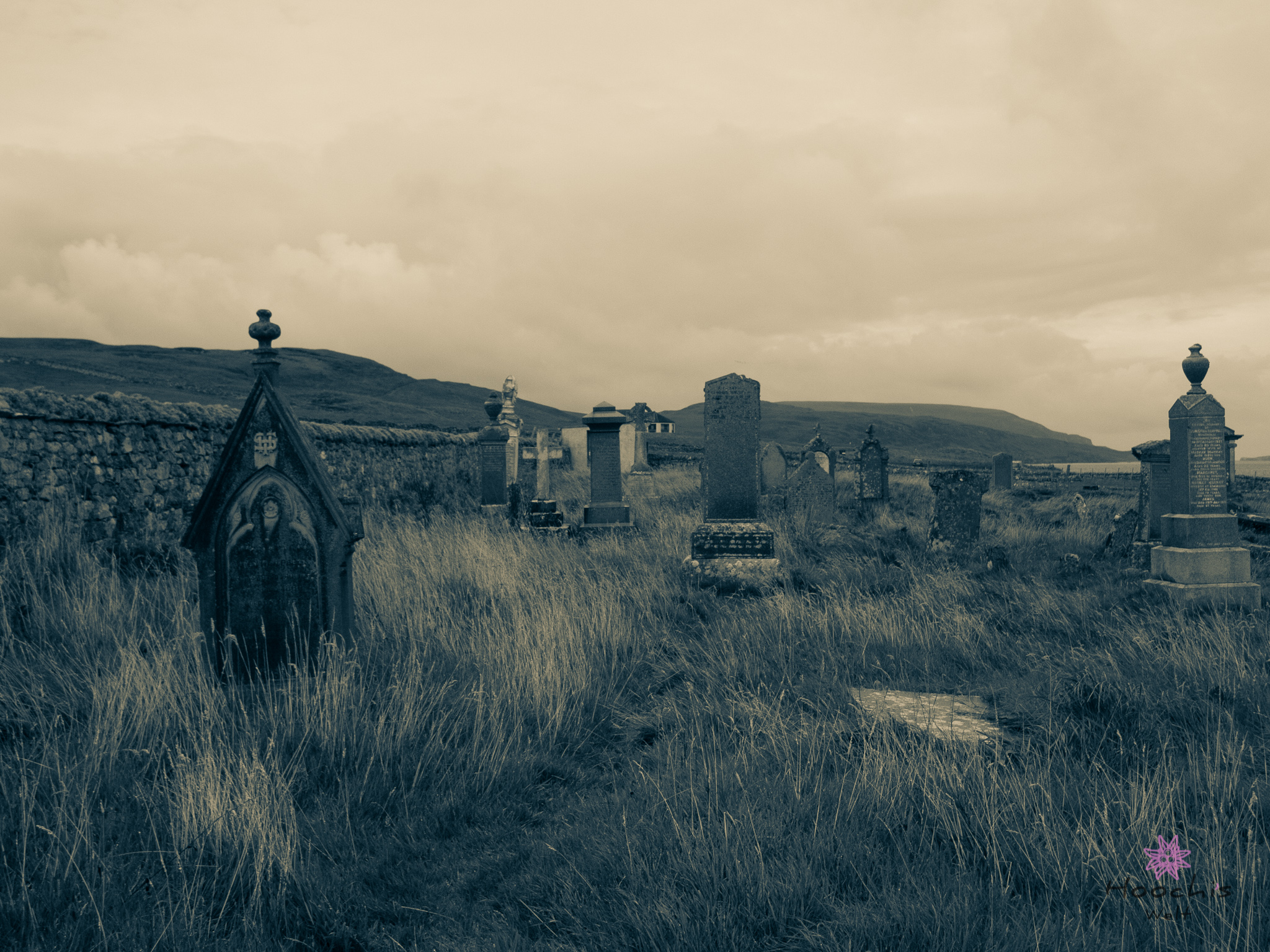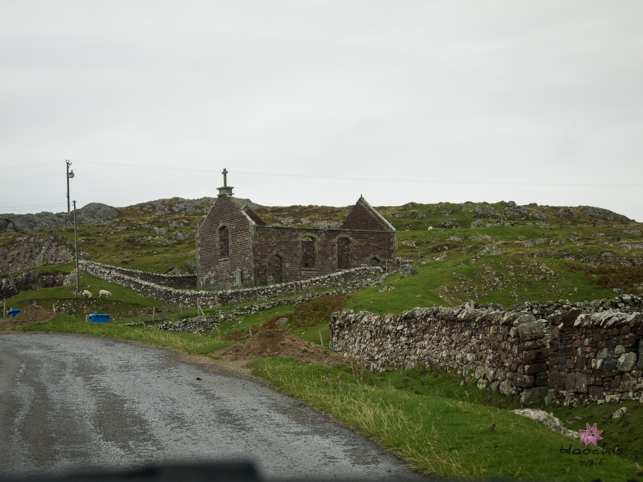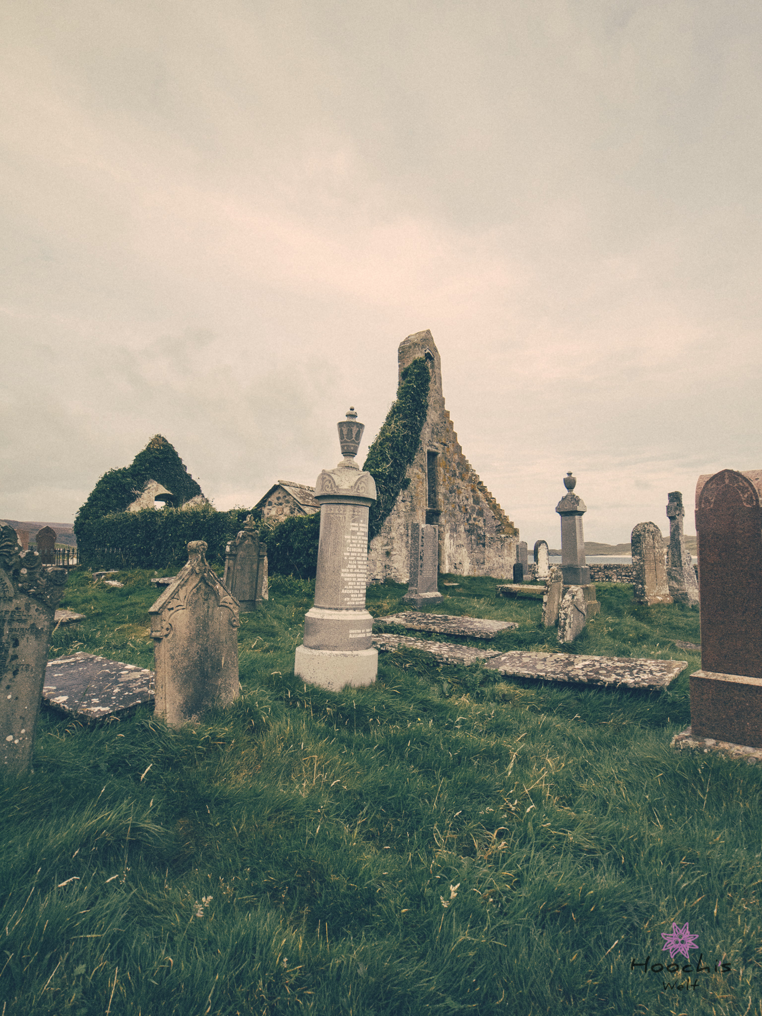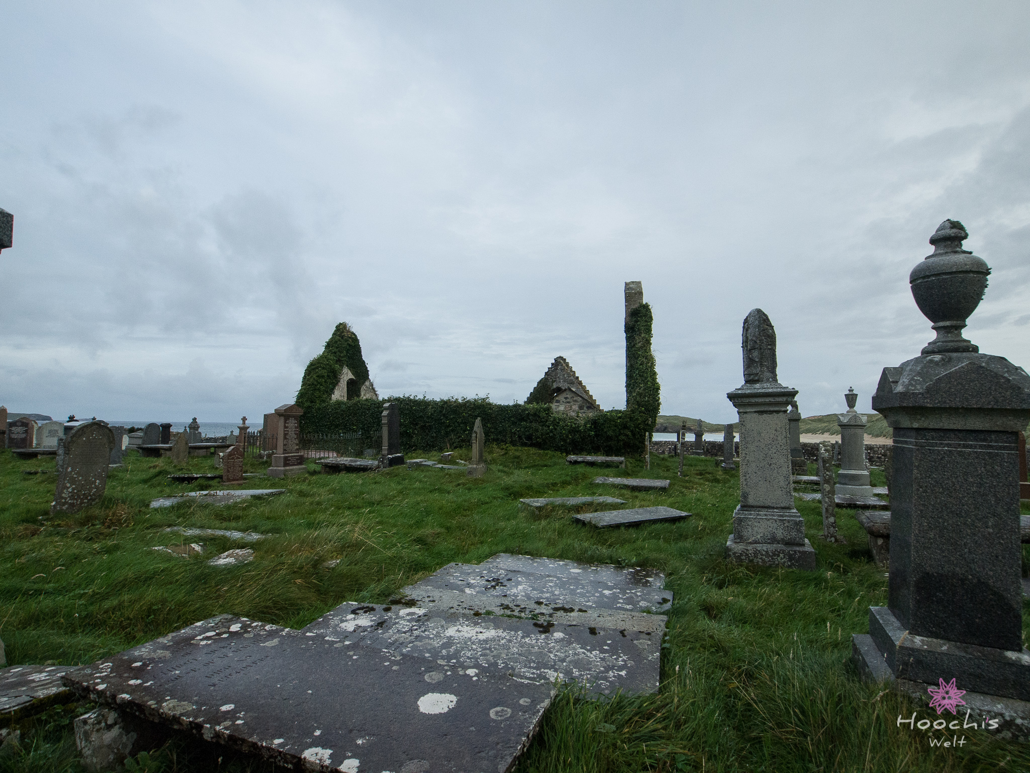 Als dort alles digital festgehalten war, fuhren wir durch die wirklich sehenswerte Landschaft zur Balnakeil Bay und dessen Friedhofs.