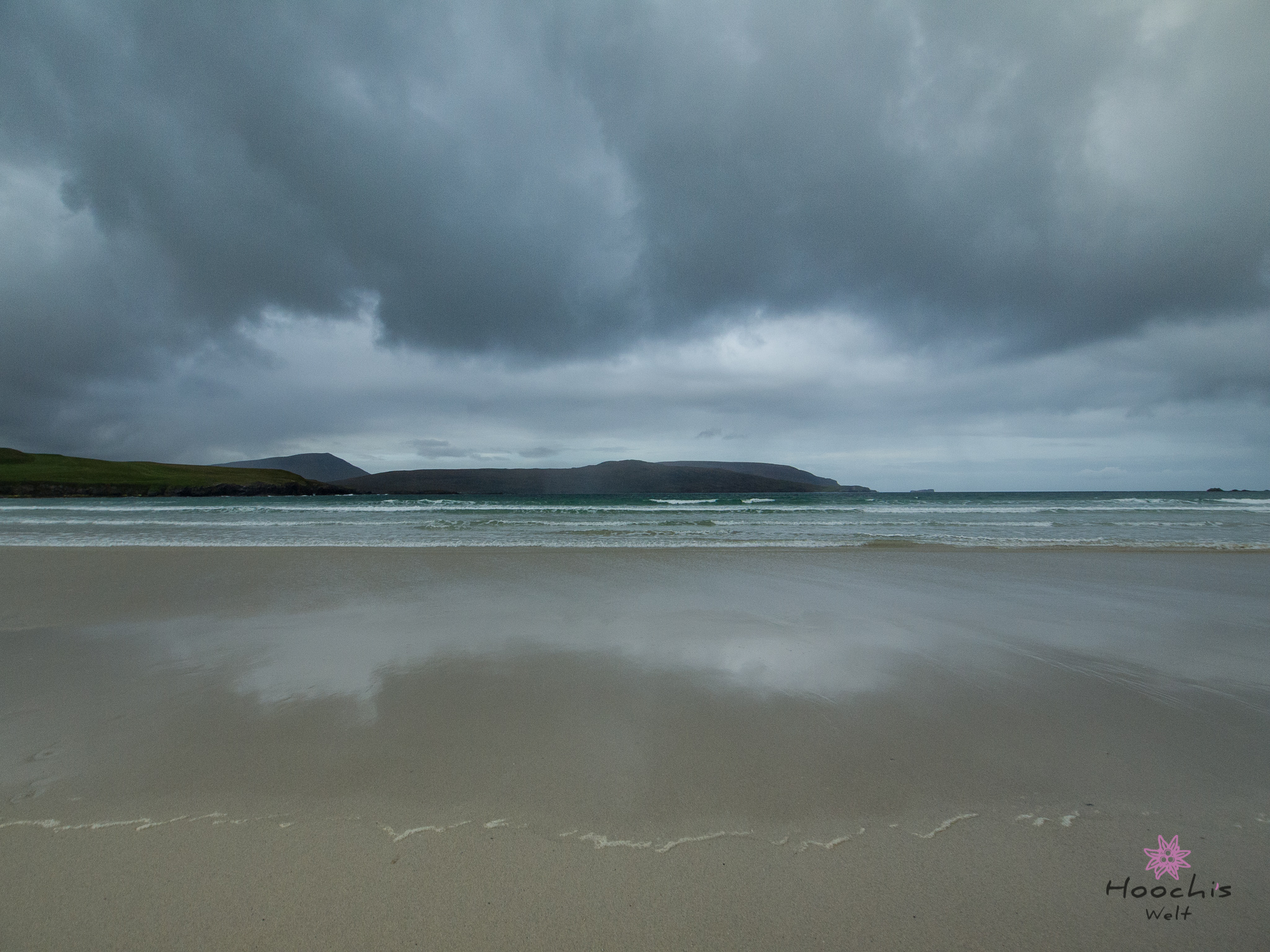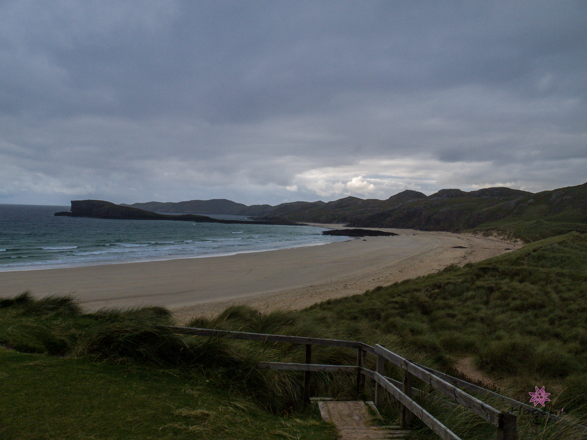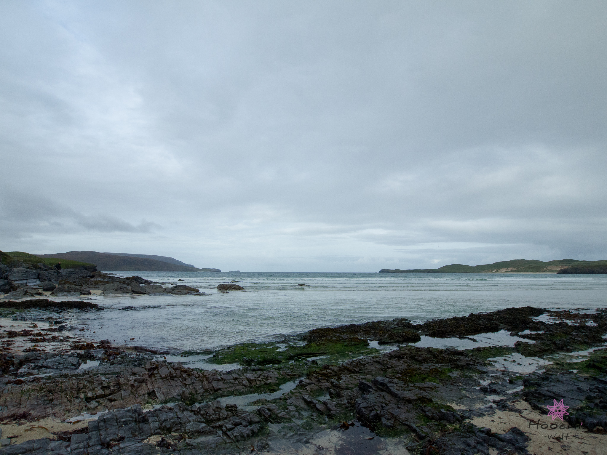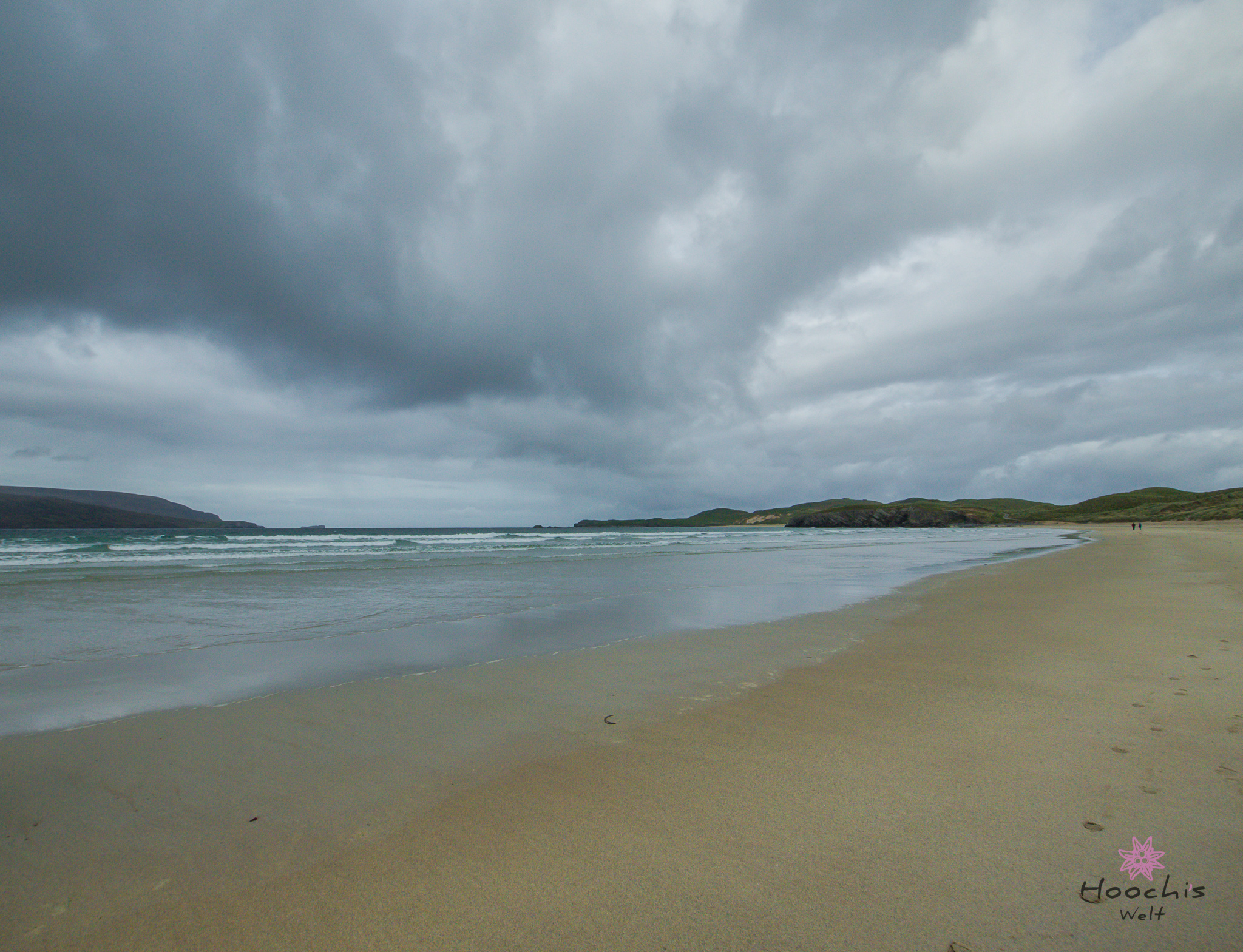 Bruno war nun zufrieden und brachte dasFlosen und mich nach Oldshoremore an den Sandstrand. Am dortigen Parkplatz angekommen, nahm der Wind stark zu und ich schnappte mir deshalb nur meine Kamera. Mein Stativ ist für solch Windverhältnisse nicht geschaffen.