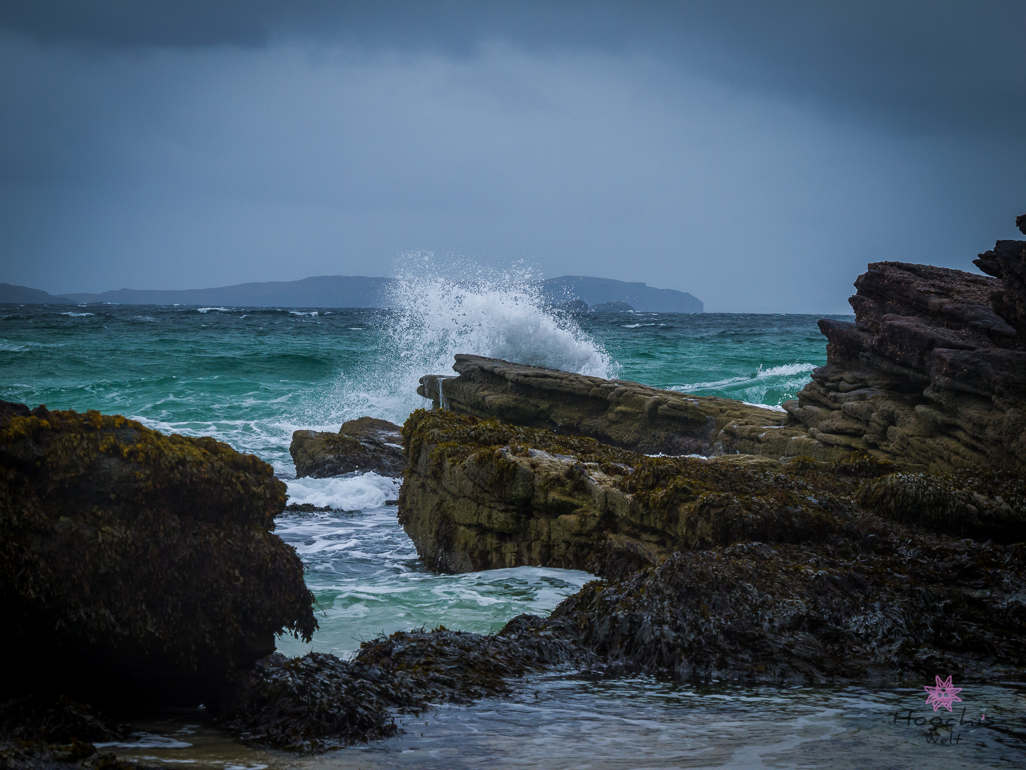 Das Wetter war an diesem Tag auch wieder besser und wir versuchten unser Glück noch einmal am Sandstrand bei Oldshoremore. Und es hat geklappt. Es windete zwar wie die Sau, dafür war die Brandung und die Wellen gigantisch.