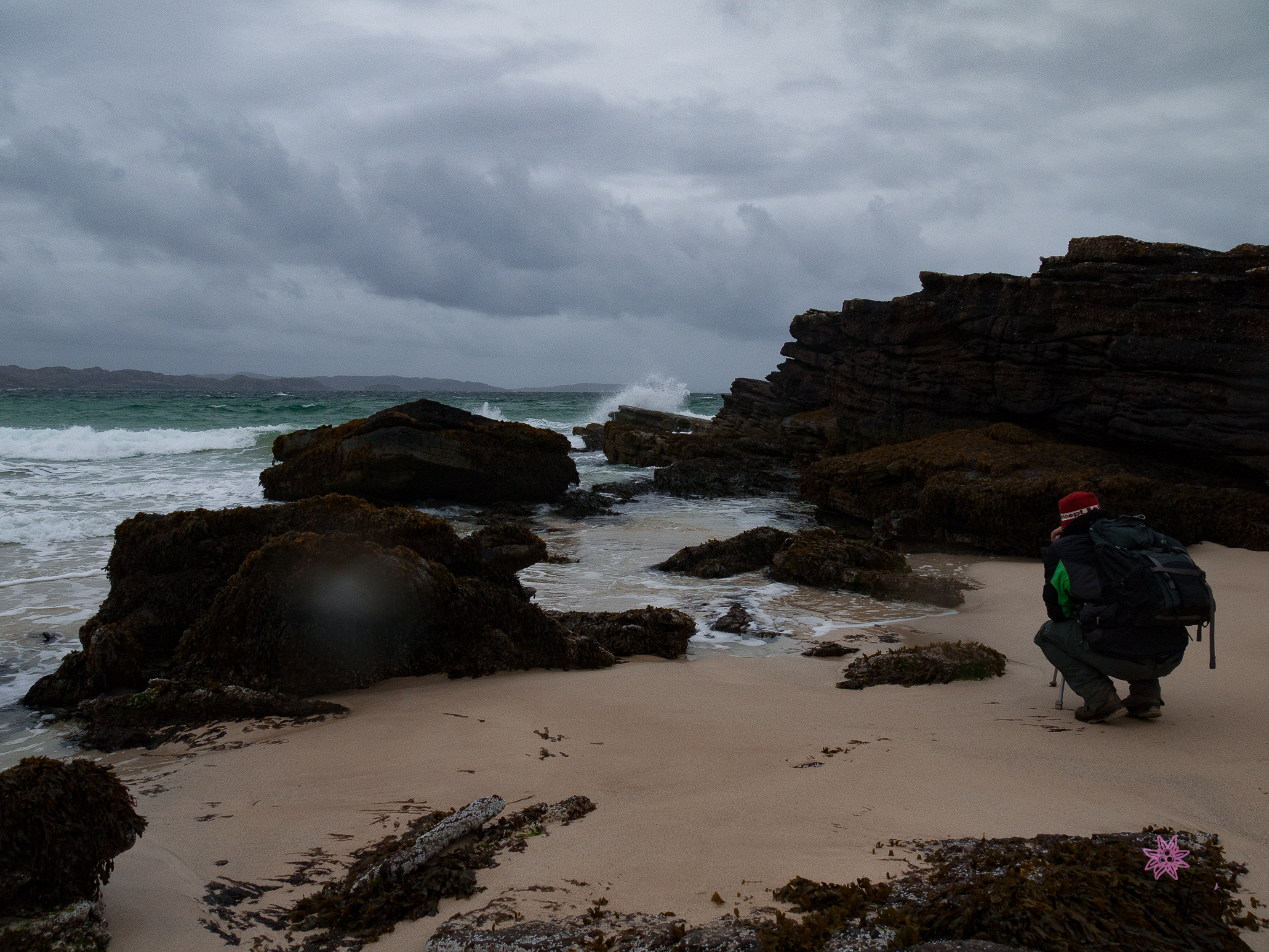 Dennoch gingen wir kurz zum Strand. Der Wind wurde stärker und der Regen nahm zu, da beschlossen wir, wieder zurück zum Bus zu gehen. Während wir zurück liefen, überlegten wir, ob wir die Strecke zurück fahren sollen um das Stativ zu suchen oder nicht. Ja, wir fuhren zurück und suchten alles ab. Leider ohne Erfolg. Toller Tag für Flo. Aber wir hatten ja noch mein Stativ, das aber Flo nicht ganz zufrieden stellte.