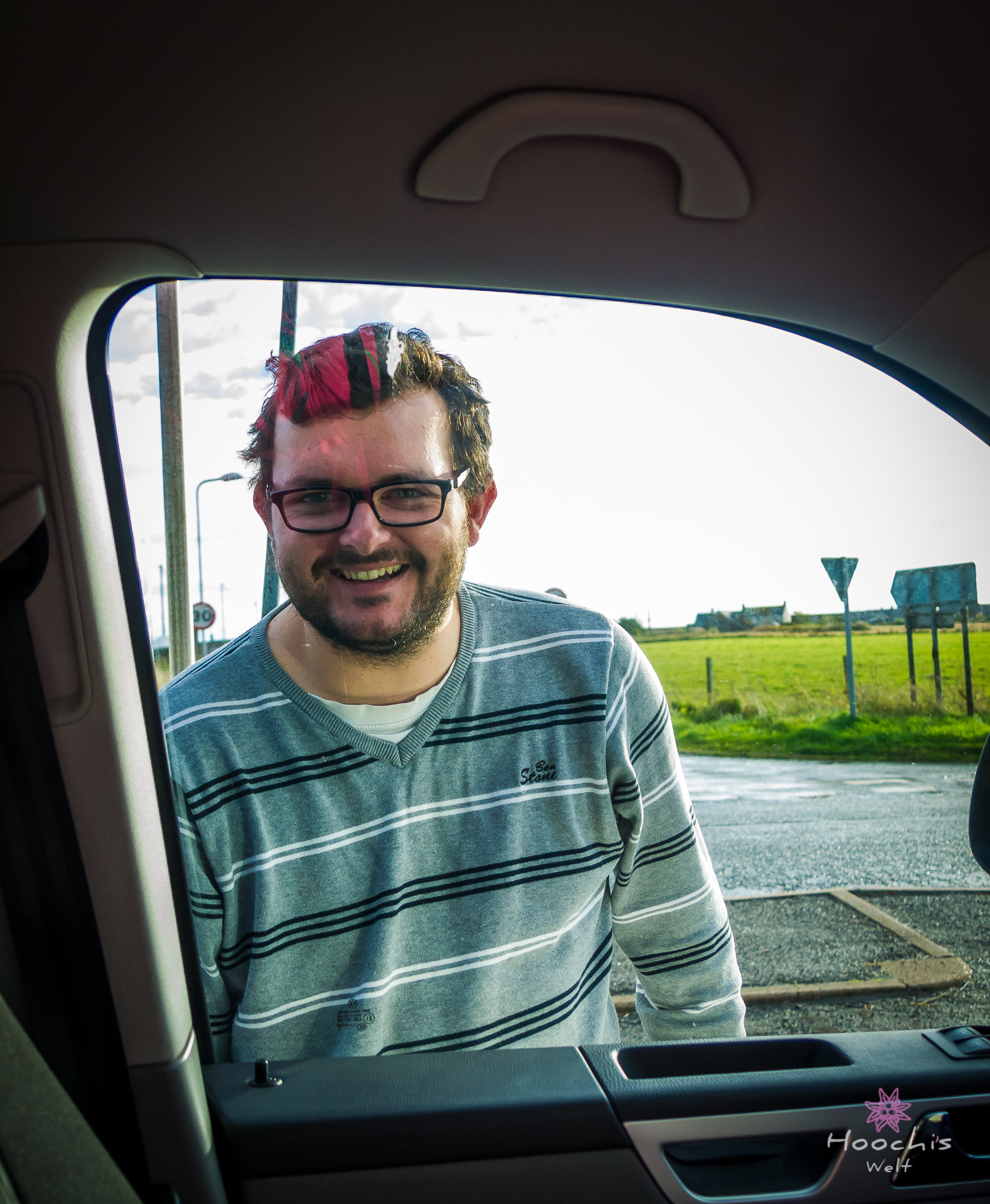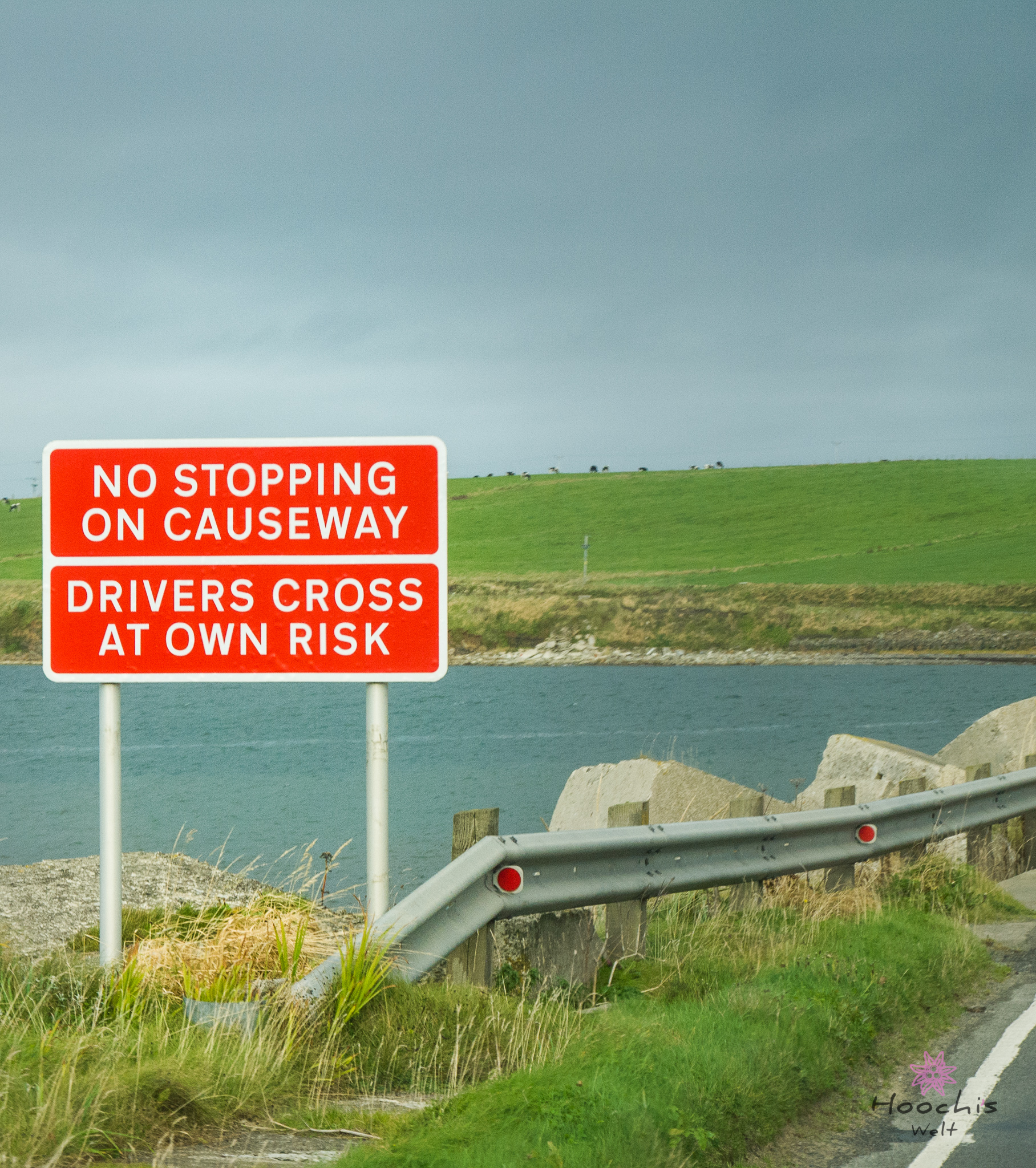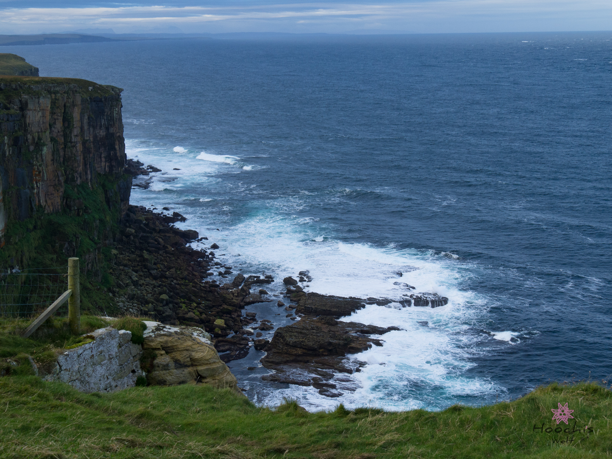 Vollgetankt bis oben hin fuhren wir nach Gills zurück und buchten die Überfahrt. Mit 65£ und einer Stunde überfahrt war sie deutlich günstiger als die Fähre von Thurso aus. Da wir noch genügend Zeit hatten fuhren wir wieder zurück zum Dunnet Head und sahen uns den nördlichsten Punkt an. Zurück am Hafen mussten wir noch warten, da die Fähre noch nicht zu sehen war. Dies änderte sich aber schnell und wir konnten uns in die Fahrzeugschlange einreihen und auf das Schiff fahren. Wie schon gesagt, die Überfahrt dauerte eine Stunde. Für mich allerdings dauerte sie viel länger. Durch den enormen Wellengang wurde mir nach kurzer Zeit schon flau im Magen. Ich aß einen Müsliriegel und dadurch wurde es deutlich besser. Flo hatte seinen Spaß und konnte die Fahrt genießen. Er meinte zu mir, ich sei ganz blass und ob es mir wirklich gut ginge… Nein, ich brauche keinen Anti-Seefahrt-Übelkeits-Kaugummi. 😀