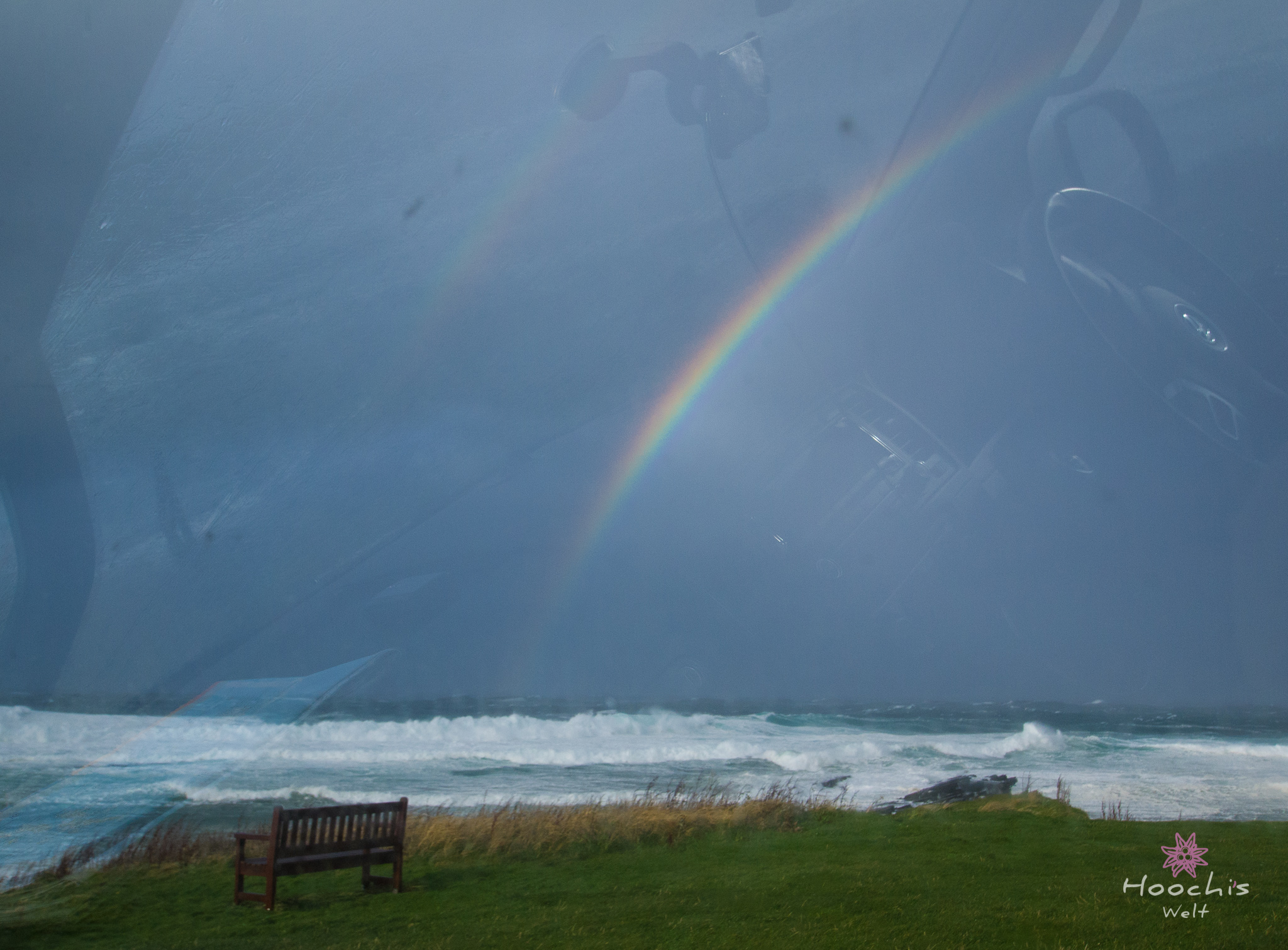 Wir stiegen aus, ich knipste ein paar Fotos und verschwand wieder im Bus. Flo dagegen tobte sich richtig aus und blieb bei Regen und Sturm da draußen. Er war patsch nass und ich fror dafür im Bus. Außerdem war es mir nicht ganz geheuer, wenn Bruno so wackelte. Ich dachte ich würde davon fliegen.