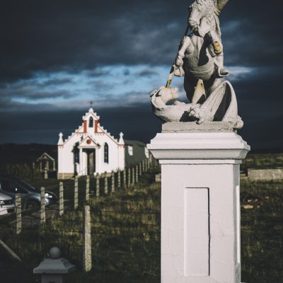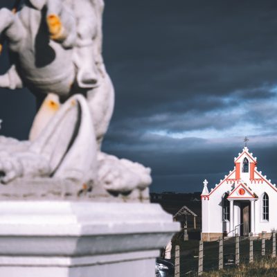 Am Hafen angekommen ging es für uns direkt weiter zur Italian Chapel. Einer seltsamen Kapelle nahe eines Dammes. Seltsam, da sie weder ins Landschaftsbild, noch auf unseren bisherigen Eindrücke in Schottland bezüglich „Glaube“ und „Kirche“ passte. Sie wirkte so „bekannt“. Als wäre diese direkt aus dem hauseigenen INRI-Katalog des Vatikans bestellt und geliefert worden.