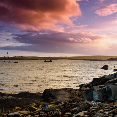 Nach dem erneuten Besuch in Kirkwall fuhren wir zurück in Richtung St. Magrets Hope. Am nächsten Morgen wollten wir mit der Fähre wieder aufs „Mainland“ zurückkehren. Auf dem Weg genossen wir noch einen sehr schönen Sonnenuntergang.
