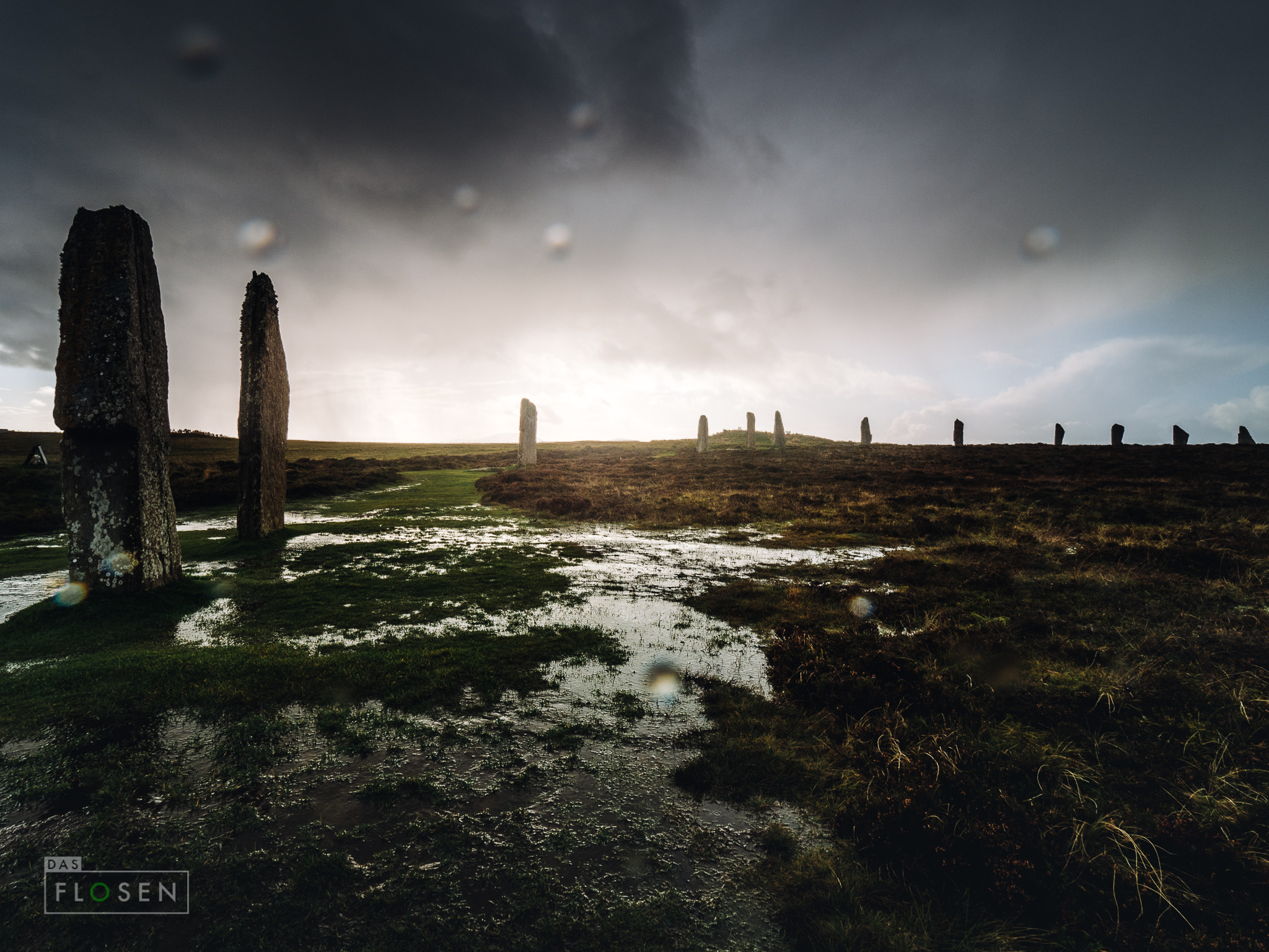 Und siehe da, wir hatten tatsächlich ein kleines „Fenster“ erwischt. Der Boden um den Steinkreis war natürlich komplett unter Wasser und übersät mit Pfützen und viiiiiiel Matsch.