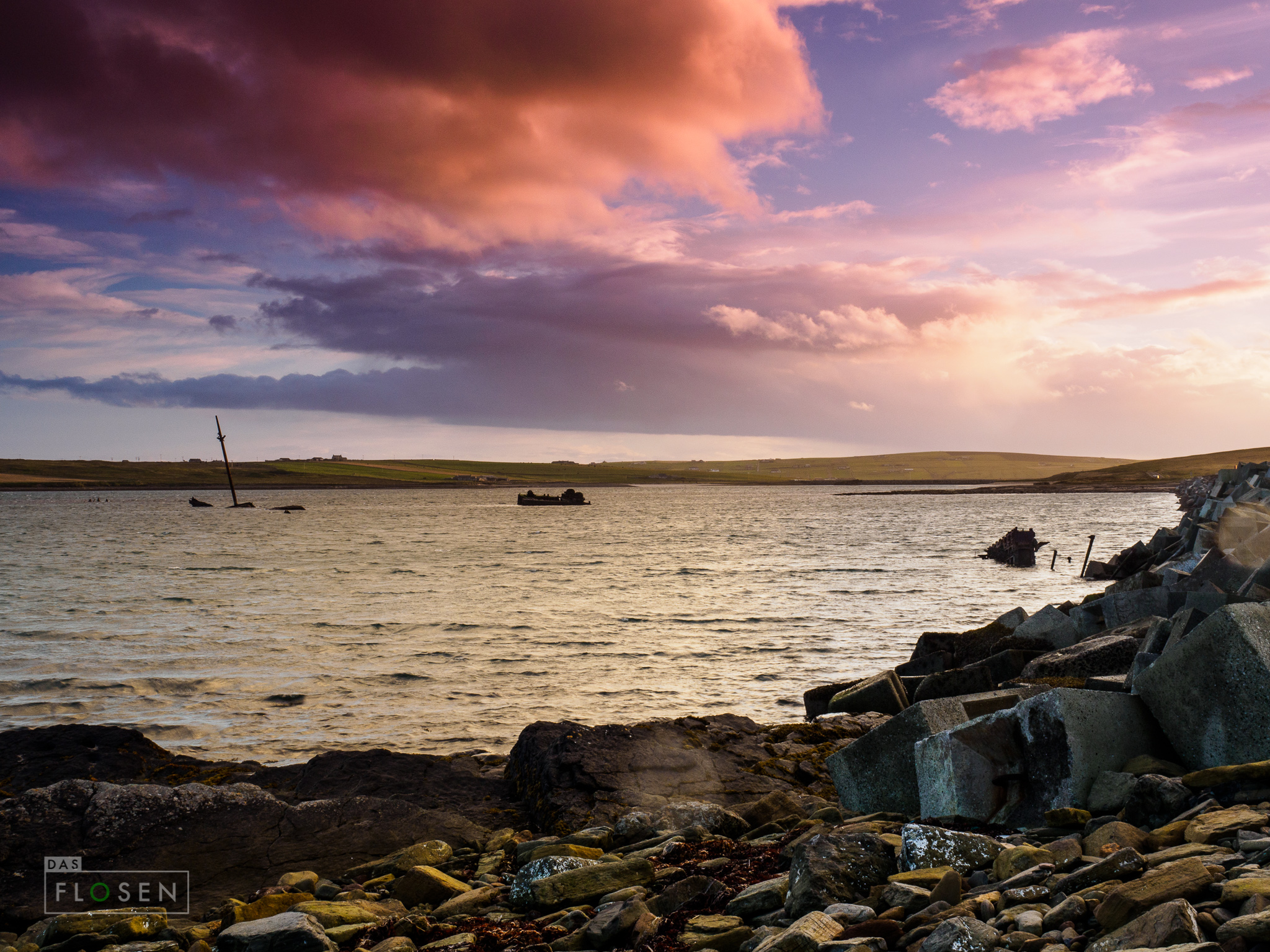 Nach dem erneuten Besuch in Kirkwall fuhren wir zurück in Richtung St. Magrets Hope. Am nächsten Morgen wollten wir mit der Fähre wieder aufs „Mainland“ zurückkehren. Auf dem Weg genossen wir noch einen sehr schönen Sonnenuntergang.
