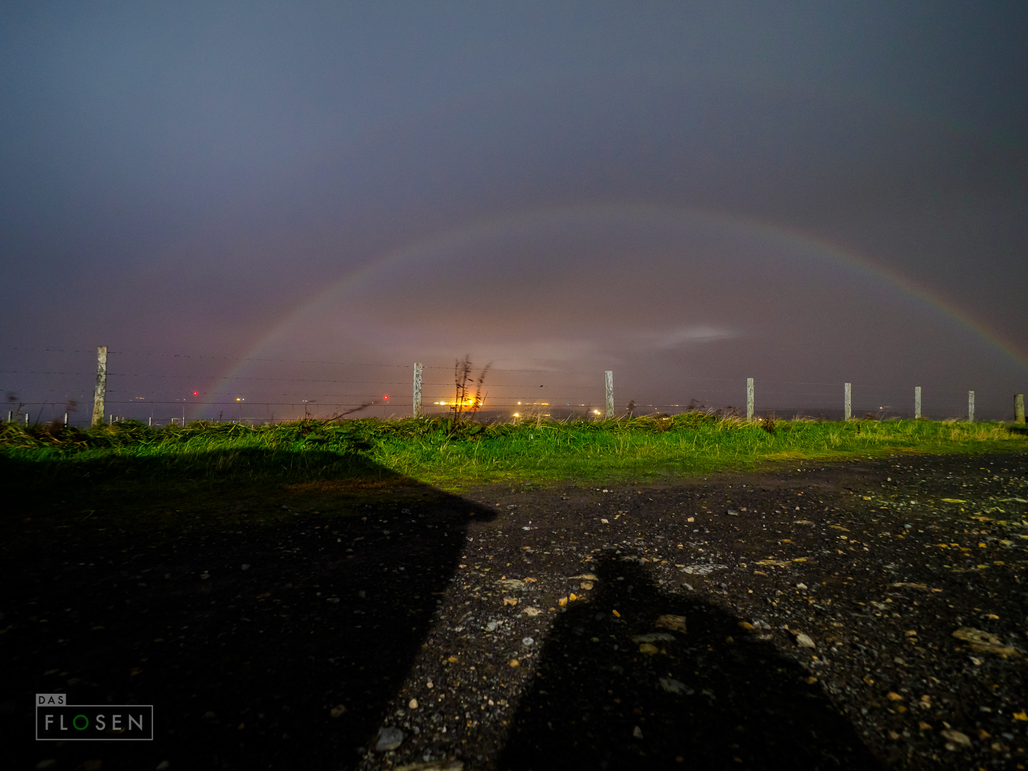 Am Abend ging es für mich nochmals kurz raus aus dem Bus und ich vernahm einen komischen Schleier im wolkenbedeckten Himmel. Sah irgendwie… komisch aus. Ich nahm die Kamera aus dem Bus und knipste mal kurz in den Himmel. Tatsächlich! Ein Regenbogen bei Nacht! Leider reichte es nicht mehr für eine zweite – schönere – Aufnahme, da er sich kurz darauf auflöste. Habe ich aber in der Form noch nie zuvor erlebt.