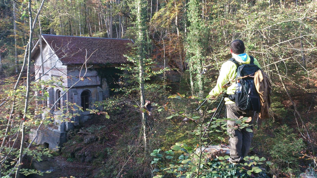 Auf dem Weg in die Schlucht erhaschten wir einen schönen Blick auf ein gegenüberliegendes und schlossartiges Anwesen. Das Licht war mir noch zu grell, aber in der Abendsonne sollte es fällig werden. Nach ein paar Metern verengte sich ein wenig der Pfad und von nun an ging es in üblicher Tobelmanier den Bach entlang. Direkt bei der Verengung passierten wir eine alte Mühle. Wir sind von dieser Uferseite aus nicht heran gekommen, es führt aber ein Pfad auf der anderen Seite direkt an der Mühle vorbei. Da die Mühle offen war, kann man dort wohl auch mal kurz hinein. Machen wir beim nächsten Mal, denkt aber bitte beim Begehen der Mühle dran: „take nothing but photographs, leave nothing but footprints“!
