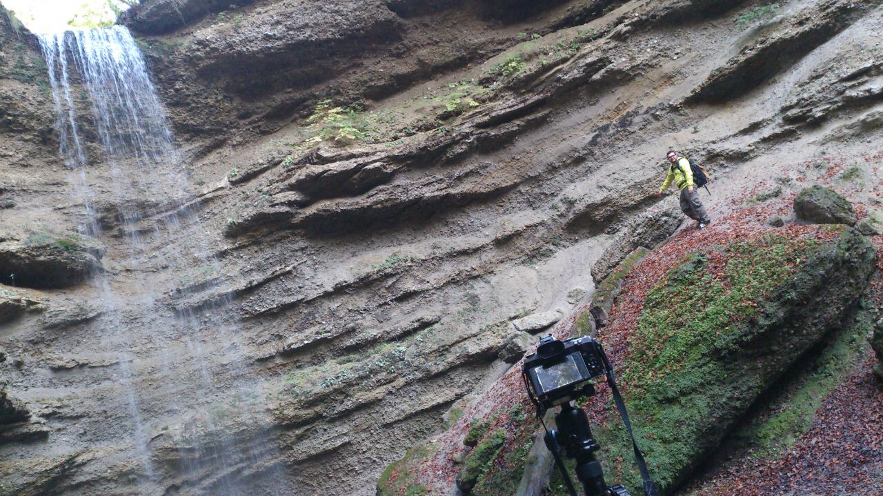 „Da! Stell Dich mal da hoch neben den Wasserfall!“