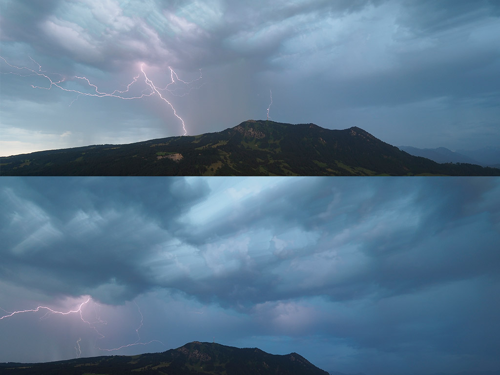 Das ist definitiv nicht schön und erfordert ein wenig ungewollte Nachbearbeitung zu Hause. Sind die Blitze vom Abstand und zeitlich gesehen jedoch weit genug Auseinander, klappt auch die Aufnahmen von mehreren Blitzen. Natürlich muss man dabei immer berücksichtigen, wie schnell die Wolken sich am Himmel bewegen.