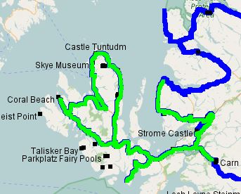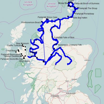 Man stellt sich manchmal die Frage, ob man tatsächlich alle Trackpunkte benötigt. Manchmal kommt es auch vor, dass der Tracker einen „korrupten“ Punkt außerhalb der Strecke gesetzt hat. Ich brauche für meine Google-Maps Karten eigentlich nicht jeden Meter. Diese Details sind für mich nur im „.gpx“-File interessant, wenn ich im Lightroom meine Bilder punktgenau tracken möchte. Zudem birgt eine solche Vielzahl noch eine andere Gefahr. Performanceprobleme! Wenn man z.B. die Schottlandkarte zoomt, passiert das nur sehr langsam. Da kann es schon vorkommen, dass man sich plötzlich auf höchster Zoomstufe wiederfindet, obwohl man nur eine Stufe zoomen wollte. Aus diesem Grund lassen sich die Tracks optimieren.
