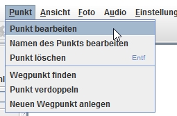 Im vorangegangen Abschnitt haben wir bereits Trackpunkte und POI’s markiert. Nun wollen wir diese Punkte auch bearbeiten. Über das Menü „Punkt“ und „Punkt bearbeiten“ kommen wir in das Bearbeitungsfenster. In diesem lassen sich sämtliche Informationen händisch Nachbearbeiten. Die GPS-Koordinaten habe ich noch nie geändert, allerdings ist es nicht schlecht, dass sich hier auch Name und Beschreibung ändern lassen. Später in z.B. Google-Maps werden diese dann auch dementsprechend übernommen