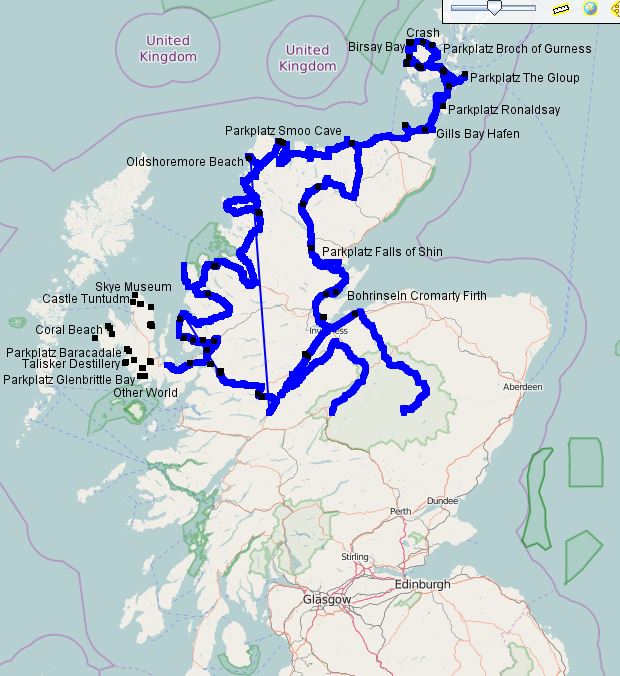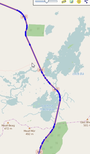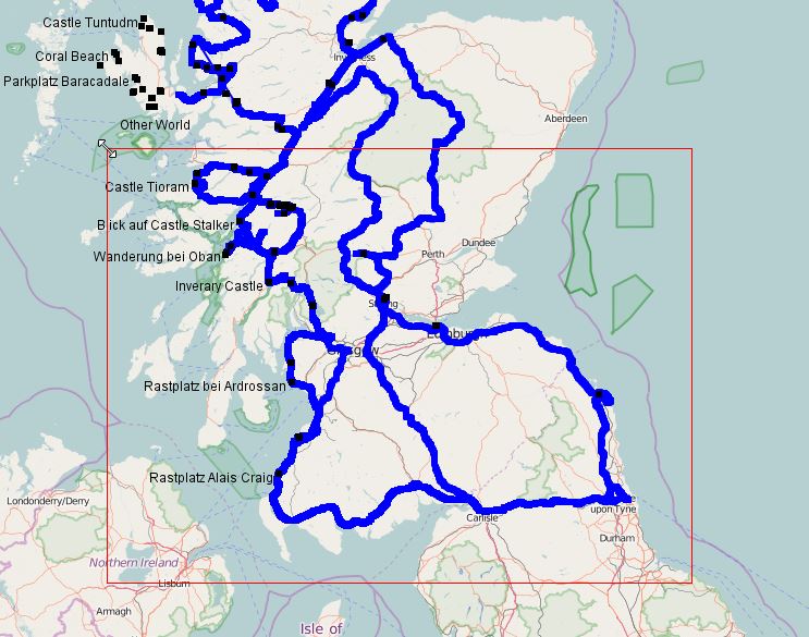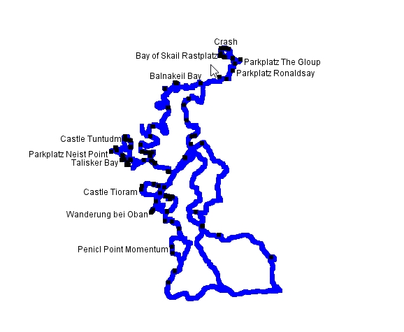 Man stellt sich manchmal die Frage, ob man tatsächlich alle Trackpunkte benötigt. Manchmal kommt es auch vor, dass der Tracker einen „korrupten“ Punkt außerhalb der Strecke gesetzt hat. Ich brauche für meine Google-Maps Karten eigentlich nicht jeden Meter. Diese Details sind für mich nur im „.gpx“-File interessant, wenn ich im Lightroom meine Bilder punktgenau tracken möchte. Zudem birgt eine solche Vielzahl noch eine andere Gefahr. Performanceprobleme! Wenn man z.B. die Schottlandkarte zoomt, passiert das nur sehr langsam. Da kann es schon vorkommen, dass man sich plötzlich auf höchster Zoomstufe wiederfindet, obwohl man nur eine Stufe zoomen wollte. Aus diesem Grund lassen sich die Tracks optimieren.