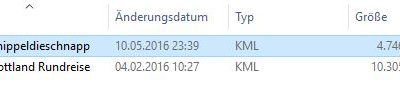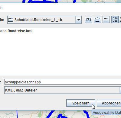 Über „Datei“ lässt sich das Ergebnis in verschiedenen Formaten speichern. In meinem Fall nehme ich „KML“. Es ist das Format für all meine eingesetzten Google Anwendungen und da ich ausschließlich meine Karten in Google Earth und Google Maps verwalte, wähle ich auch dieses Format. Ihr könnt natürlich auch z.B. „GPX“ wählen. Manche Apps auf den Smartphonen „fressen“ dieses Format und so habt Ihr einen portablen Track dabei, wenn den Track etwa nachfahren/laufen möchtet. Auch manche Outdoor-GPS-Uhren oder Smartwatches springen eher auf „GPX“ an. Wie gesagt, es bleibt Euch und dem weiteren Verwendungszweck überlassen.