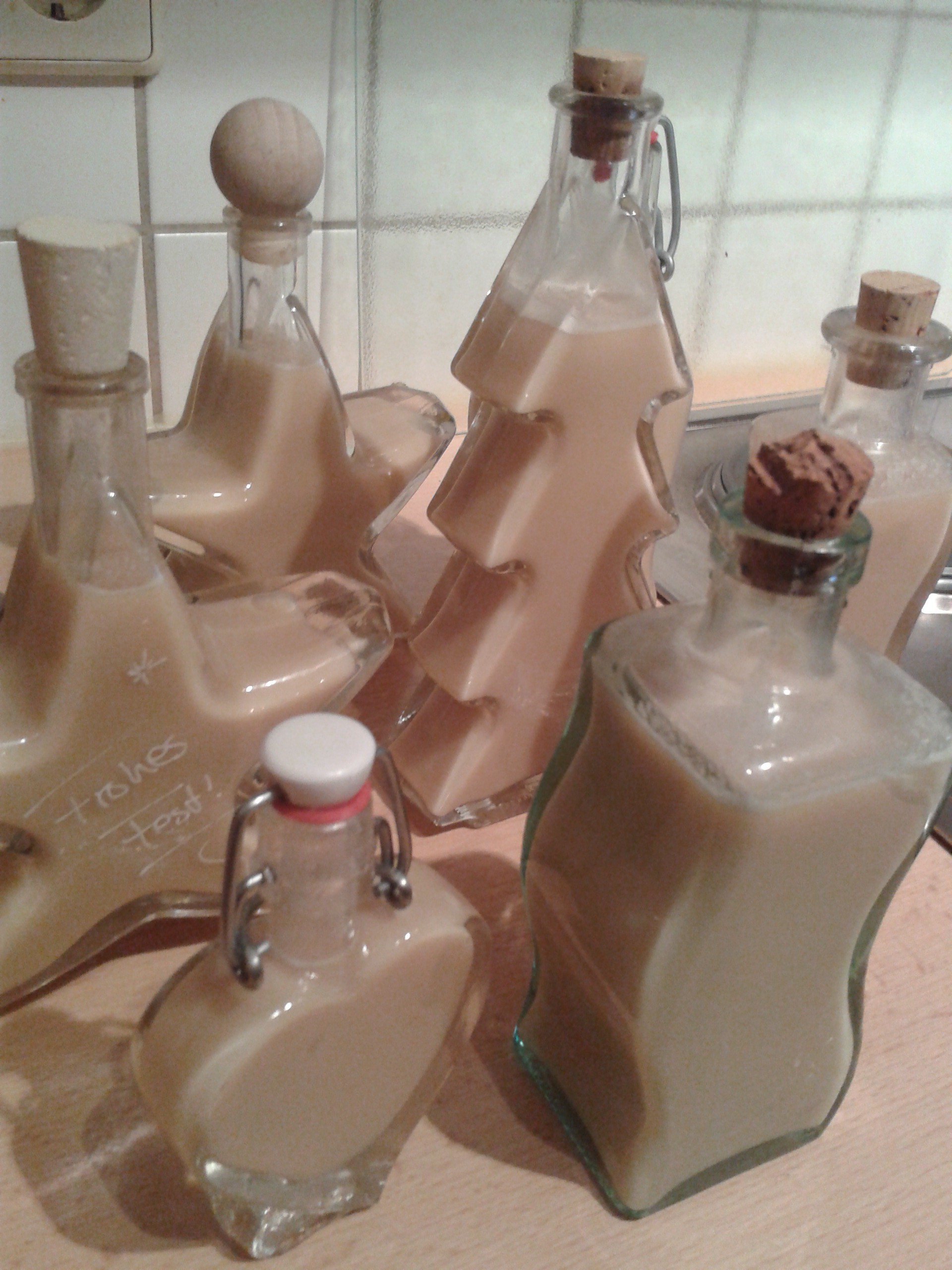 Die Masse eine halbe Stunde erkalten lassen und anschließend den Amaretto eingießen, am besten mit dem Pürierstab nochmal mixen und dann alles abfüllen.