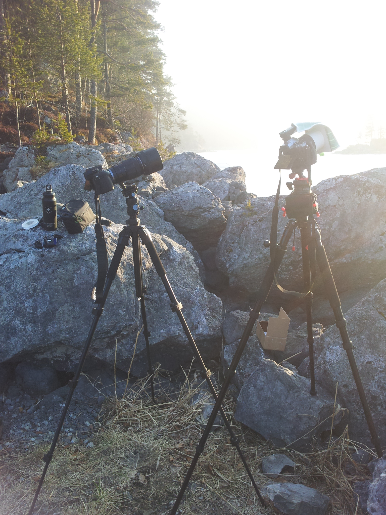 Jetzt konnte also die letzte Stufe bestiegen werden. Die Technikfrage. Wie würde ich aufnehmen? Halbformat, Vollformat oder gar Überformat? Fragen über Fragen. Ich hab mich für das Überformat „mFT“ entschieden und somit für meine Olympus OM-D E-M5 und einer Panasonic Lumix GH3. Meine E-M5 bestückte ich mit einem Ultraweitwinkel, um später das Landschaftspanorama und den Sonnenverlauf einzufangen. Die GH3 hingegen sollte für die Detailaufnahmen mit meinem Tele sorgen. Die Nahaufnahmen wollte ich dann später in der Nachbearbeitung in das Landschaftspanorama einfügen. Damit die Aufnahmen dem tatsächlichen Verlauf entsprechen, nahm ich die Weitwinkelaufnahme als Referenz. Somit würden im Endergebnis die Sonnenstände passen. Ihr dürft mich somit auch „Fuchs“ nennen – Danke.