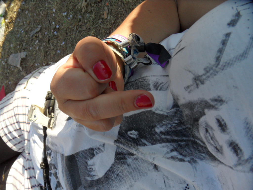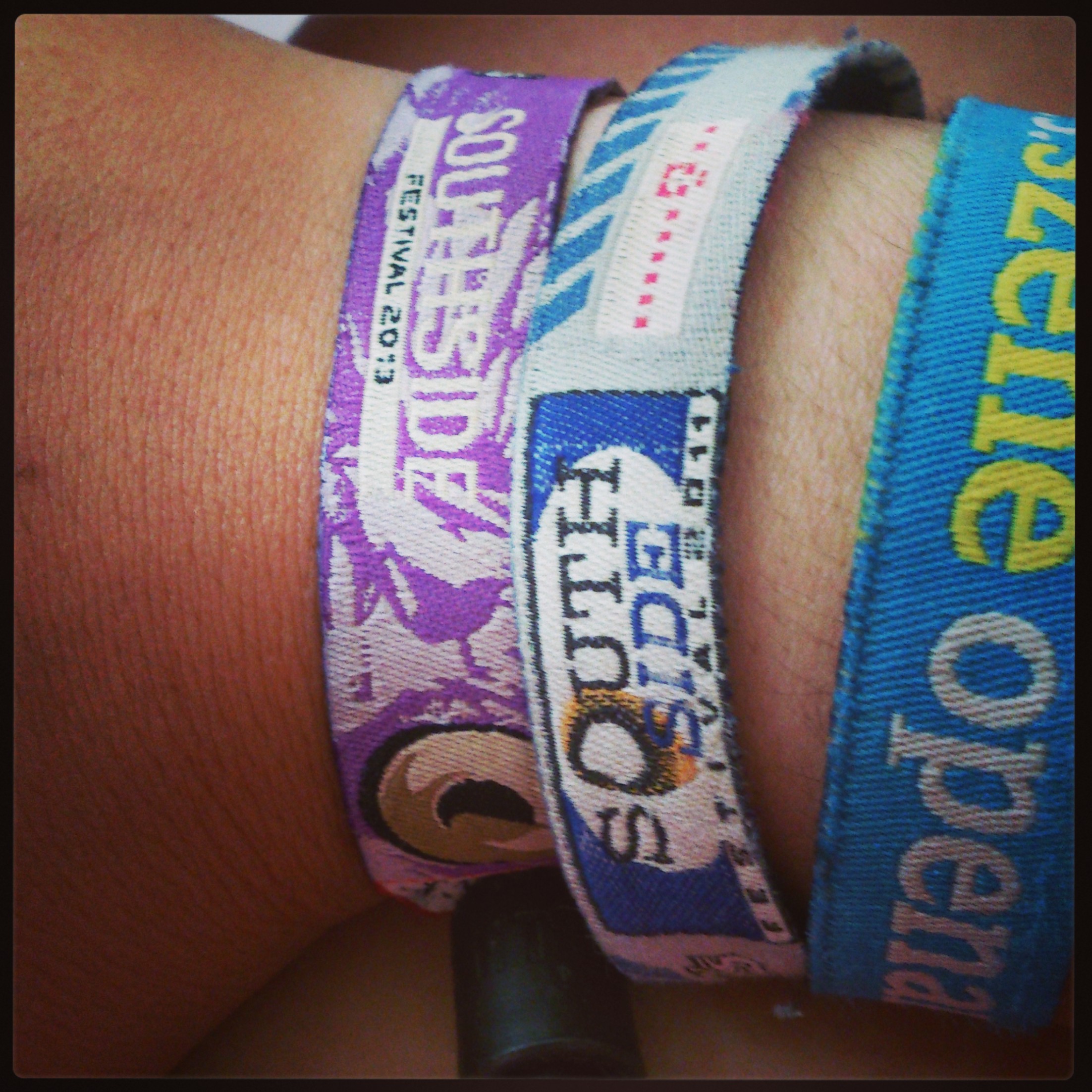 Dort angekommen reihten wir uns ohne Gepäck in die Menschenmenge ein, um endlich unser Festivalbändchen zu bekommen. Die Freude war rießig und die Augen wurden größer, als Anne und ich entdeckten, dass es dieses Jahr ein lila Bändchen mit einem Eulenauge sein sollte. Mit Eule – so, wie es Anne wollte und lila – so, wie ich es wollte.