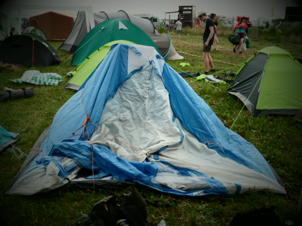 Irgendwann gingen meine beiden Asylgewährer noch auf die Toilette. Ich blieb im Zelt. Als sie wieder zurück kamen, stand da ein fremdes Zelt unter unserem Pavillon. Einfach so! Türe an Türe. Ich dachte Anne & Matze wollten mich verarschen, denn ich hatte absolut nichts mitbekommen. Und ich lag ja im Zelt! Ich musste mich selbst überzeugen und traute meinen Augen nicht. Als wir uns beruhigt hatten – es blieb uns ja auch nicht´s anderes übrig – legten wir uns schlafen. Als Kopfkissen diente mir der Topf inklusive Deckel. Und meine Füße hatte ich in der Lebensmitteltüte. 🙂