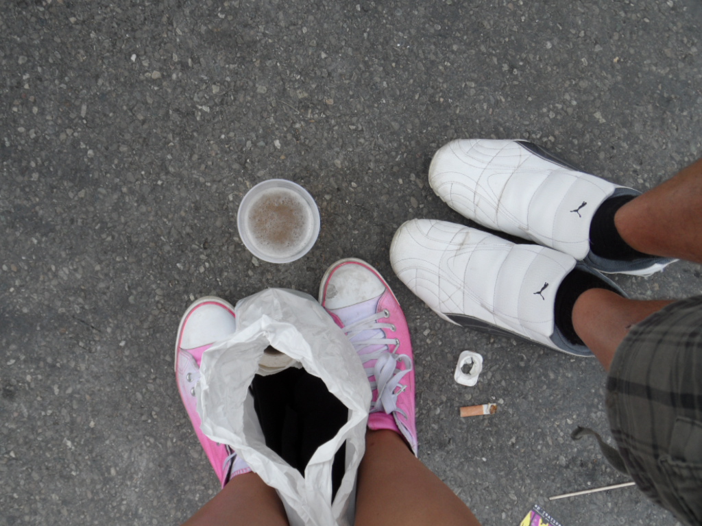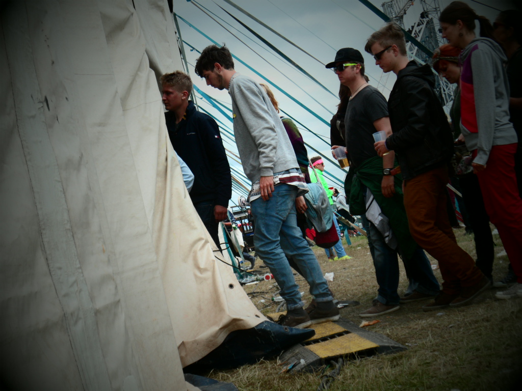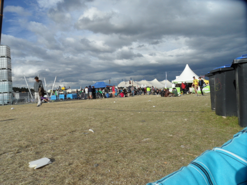 Während wir so unseren Kaffee schlürften, erzählte Chrishan, dass er morgens irgendwann einen fremden Typ aus unserem Zelt geschmissen hatte. Dieser Fremde lag in meinem Vorzelt! Chrishan wurde wach, weil der Typ die Zelttüre eingedrückt hatte, auf Chrishan´s Füßen lag und mit den Zähnen schlotterte. Das konnte doch nicht sein Ernst sein! Stand bei uns irgendwas am Pavillon, das alle zu uns kommen? Chrishan meinte dann nur, dass der fremde Typ dann auch noch schlägern wollte und das er feststellen musste, dass keine Securitys zu sehen waren, wenn man sie mal gebraucht hätte. Er schaffte es aber, ohne handgreiflich zu werden, diesen Mann in ein anderes Pavillon zu schieben und konnte dann gehen.