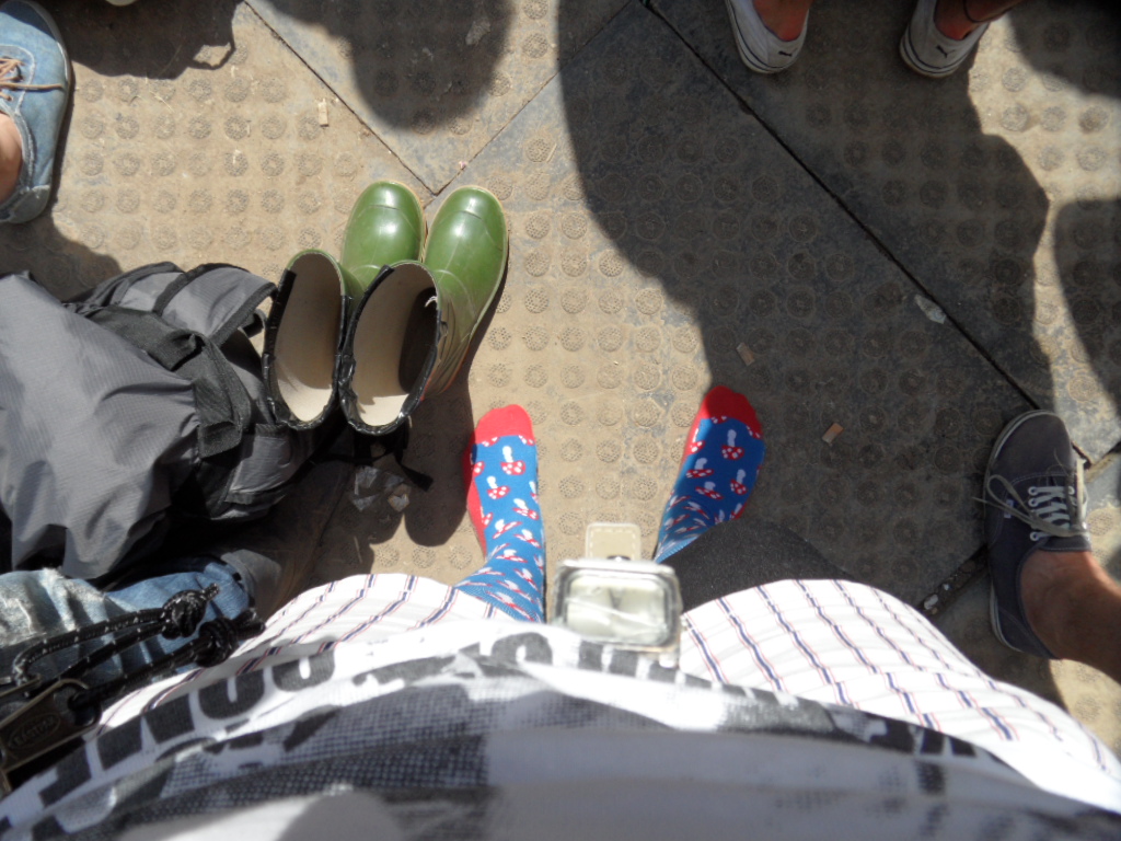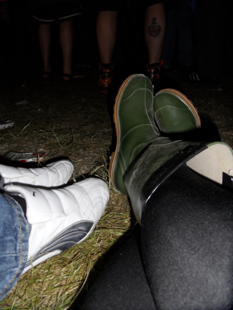Nachdem wir das Auto gefunden hatten, fing es auch schon an zu tröpfeln und wir kramten dann doch schon die Gummistiefel heraus, zogen sie an und gingen vollgepackt zum Eingang. Dort wurden wir, wie erwartet, herum geschubst. Ich dachte mir nur: ihr kommt doch alle rein! Nur langsam!