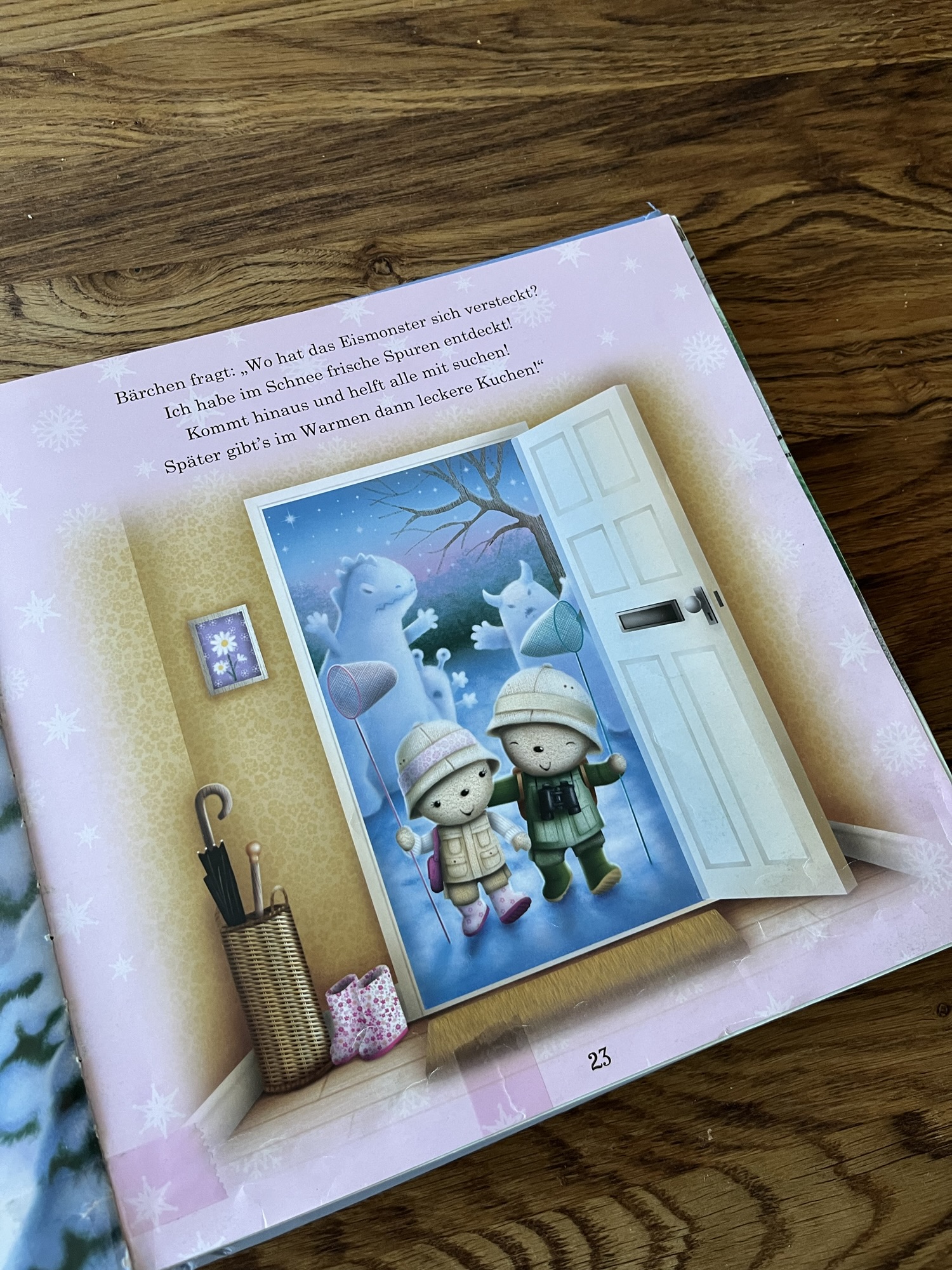 Anderer Tag, neues Buch. Der Winter ist eingezogen, die Hasen sind geblieben *lach*. „Papa, die Monster tanzen!“. Dann lassen wir sie tanzen…