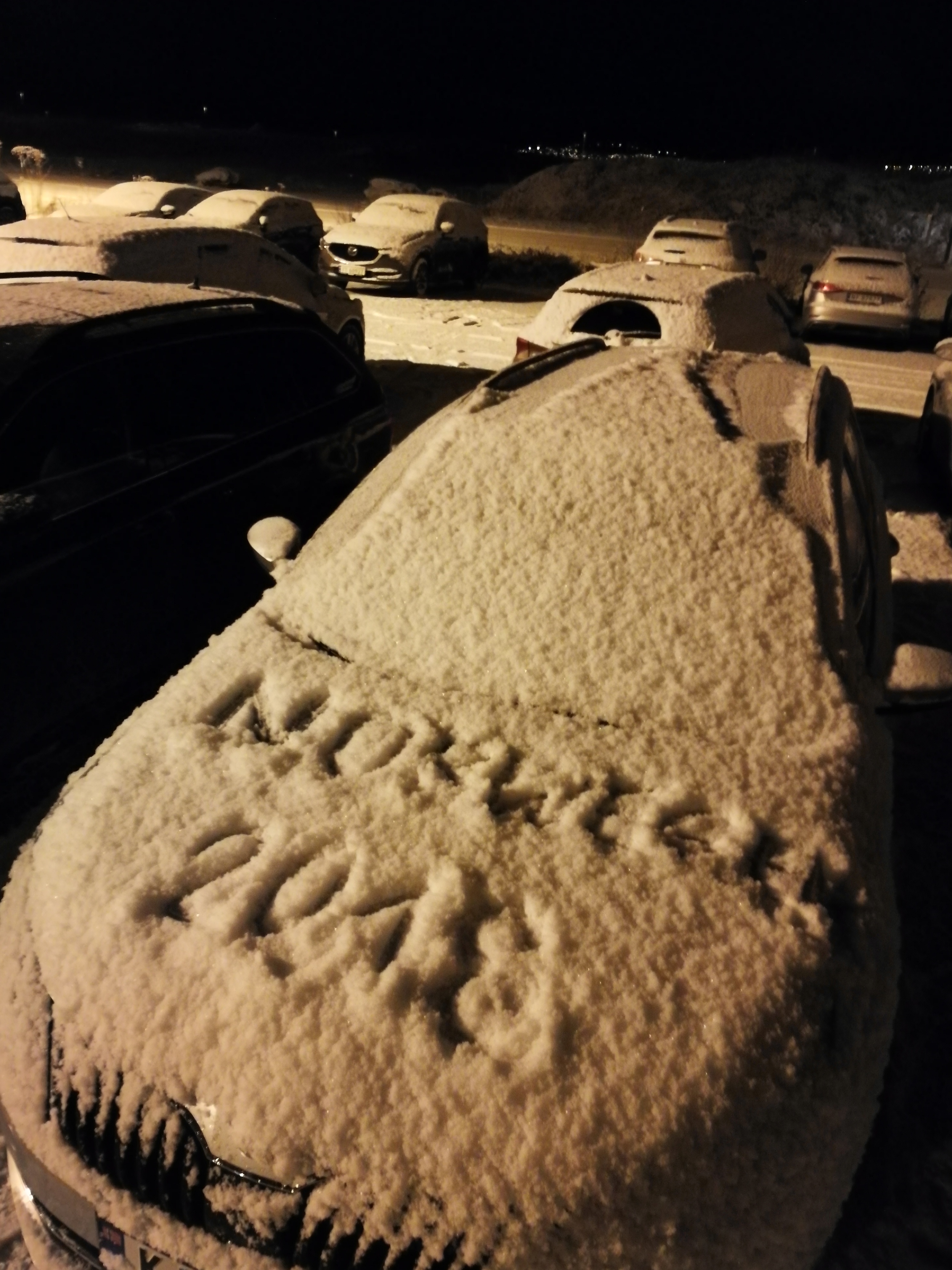 Am Flughafen dann das übliche. Es waren 6 Leute vor uns am Schalter. Keiner… KEINER hatte das Winterpaket gebucht. Alle mussten nachbuchen und jeder wollte natürlich ausführlich diskutieren. Nach über einer Stunde kamen wir endlich dran und nach 5 Minuten liefen wir mit dem Schlüssel in der Hand in Richtung des Parkplatzes um unseren Mietwagen in Empfang zu nehmen.