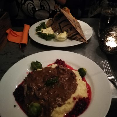 Ebenso gab es an einem anderen Tag für uns ein bisschen „einheimische“ Kost. Da ich den „Stinkefisch“ schon mal gegessen hatte, griff ich zu ReentiergulaRsch. *yummy*