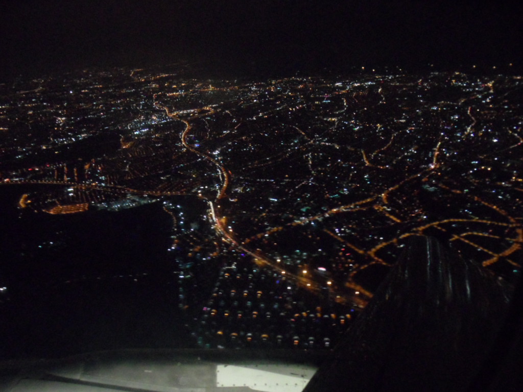Wir rollten über die Startbahn und blieben plötzlich stehen. Dann fing wieder das warten an. So standen wir Ewigkeiten auf der Startbahn herum. Da es schon dunkel war konnte ich wenigstens Flughafenbilder im dunkeln knipsen.