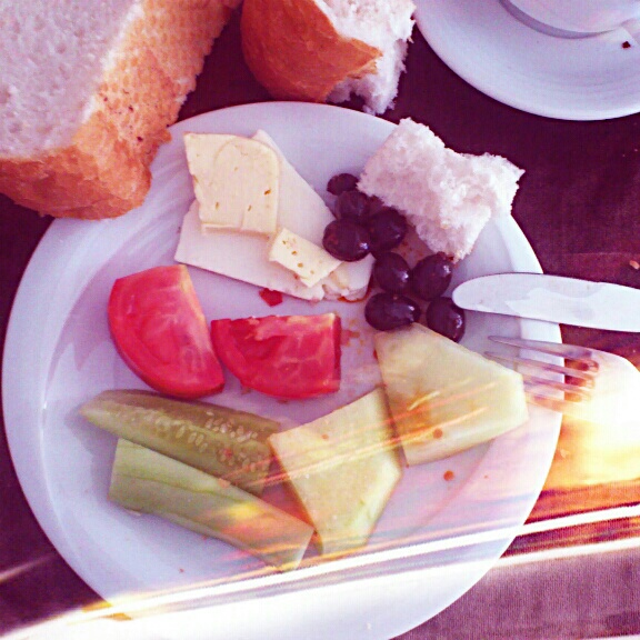 Das Frühstück war wenigstens lecker. Chilioliven am Morgen, vertreiben Kummer und Sorgen. 😉 Aber der Kaffee war untrinkbar.