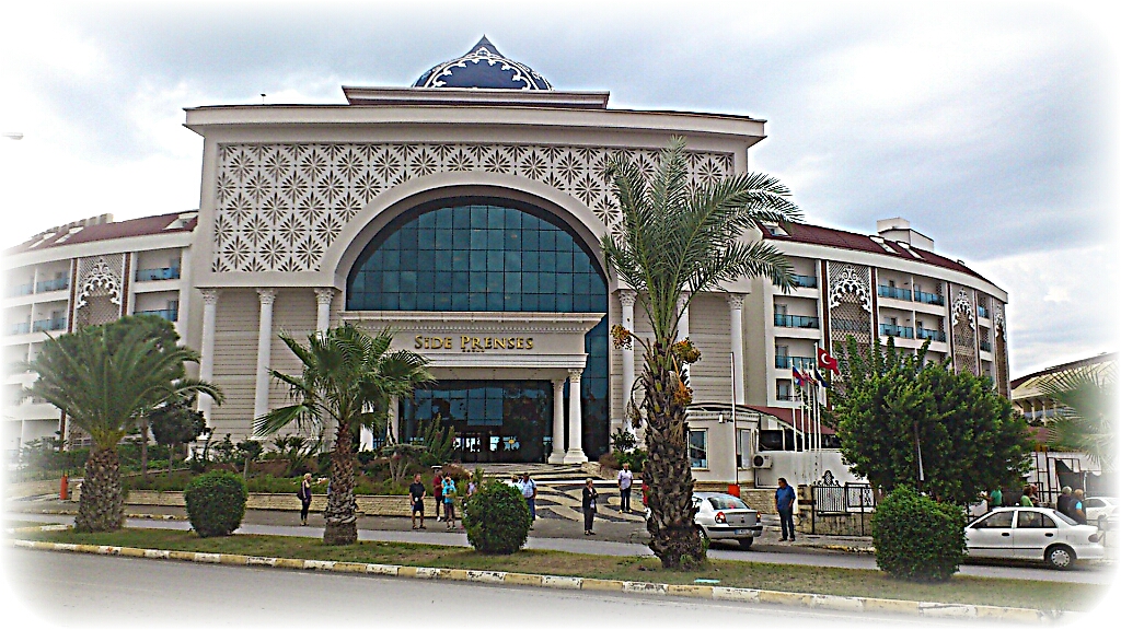 So wurde unser Gepäck in ein Dolmusch gepackt und wir stiegen ein. Es warteten auch schon andere Urlauber. Nach der kurzen Ansprache des Reiseveranstalters ging es auch schon los. Mit offener Türe und ruppiger Fahrweise. Das war nicht mein Fortbewegungsmittel Nummer eins. Das Gewitter wurde immer heftiger und der Regen prasselte nur noch so herunter. Es ging über überschwemmte Straßen nach Side. Die Straßen wurden immer hügeliger. Bis wir an einen abgefallenen Steigung kamen. Rechts und links ging es etwas steil Bergab. Wir bekamen schon irgendwie ein Bisschen Angst.