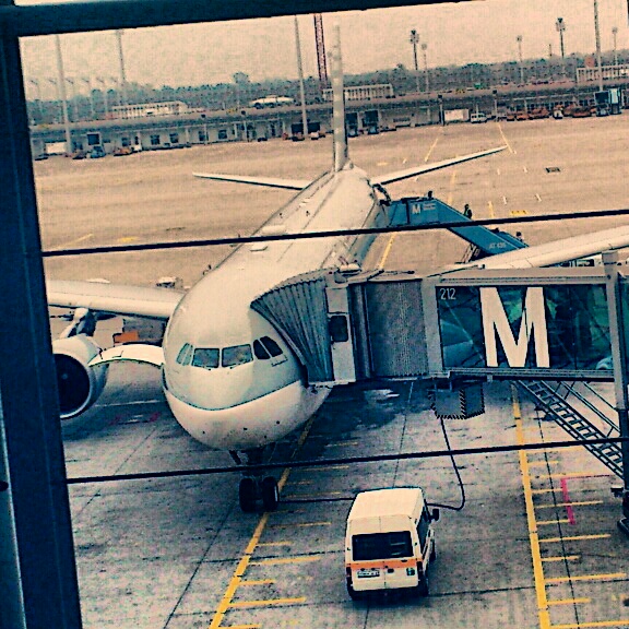 Als wir in einer Schlange vor einer Sicherheitskontrolle standen sah meine Freundin, dass unser Flieger schon die Türen geöffnet hatte. Und wir wussten immer noch nicht wo das richtige Gate war. Hektik brach aus. Die Schrift färbte sich gelb… Endlich waren wir durch die Schleuse gekommen und rannten nur noch los.